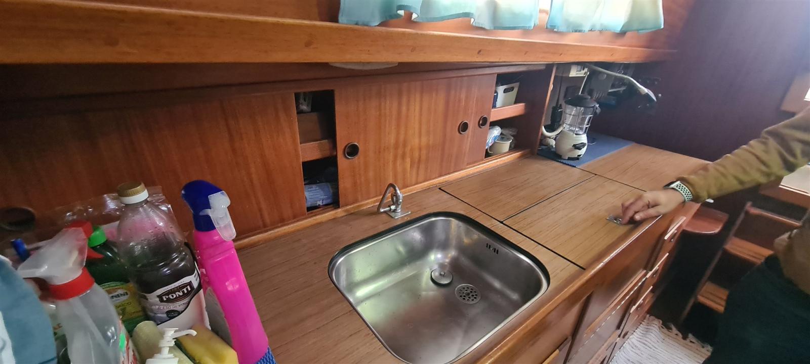 Indicatore del serbatoio del carburante, Pavimento interno in legno, Prese interne 12v, Prese interne 220v, WC marino manuale.