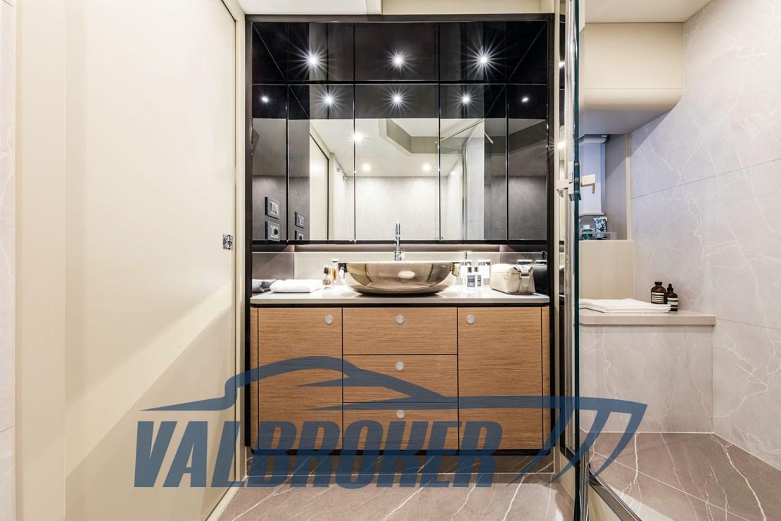 Due cabine matrimoniali, un’armatoriale a centro barca e una VIP collocata nella a prua, entrambe con doppie finestre e bagno en-suite, comodi ed eleganti; la terza cabina è doppia con bagno, a letti singoli, accoppiabili elettricamente.