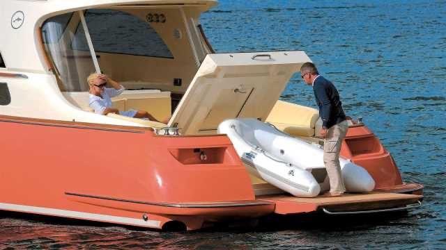Allarme motore, Allarme sentina, Apertura Vano Motore Elettrica, Autoclave, Camminamenti laterali in teak, Colorazione speciale (corallo), Doccia esterna, Faro orientabile, Flap elettrici, Garage per tender, Hard top, Indicatori Flaps, Luci di cortesia, 2 Luci subacquee (nuove 2022), Passerella (Besenzoni a scomparsa), Piattaforma (teak), Pompa di sentina automatica, Porta ingresso, Pozzetto Teak, Presa 220V banchina, Presa acqua banchina, Raddrizzatore, Salpa Ancore Elettrico, Scaletta da bagno (elettrica a scomparsa), Tavolo pozzetto, Tromba, T-Top (elettrico apribile), Winch tonneggio di poppa.