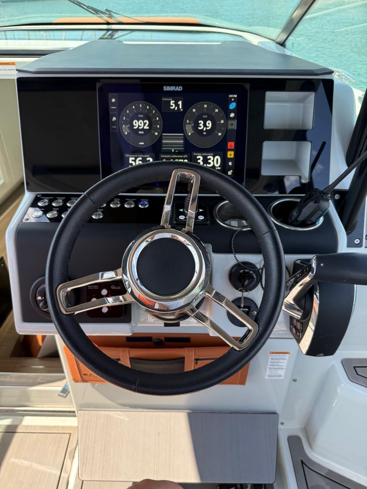 Comando motori elettronico, DSC vhf, Plotter con antenna GPS (Simrad 12"), Sedile Copilota.