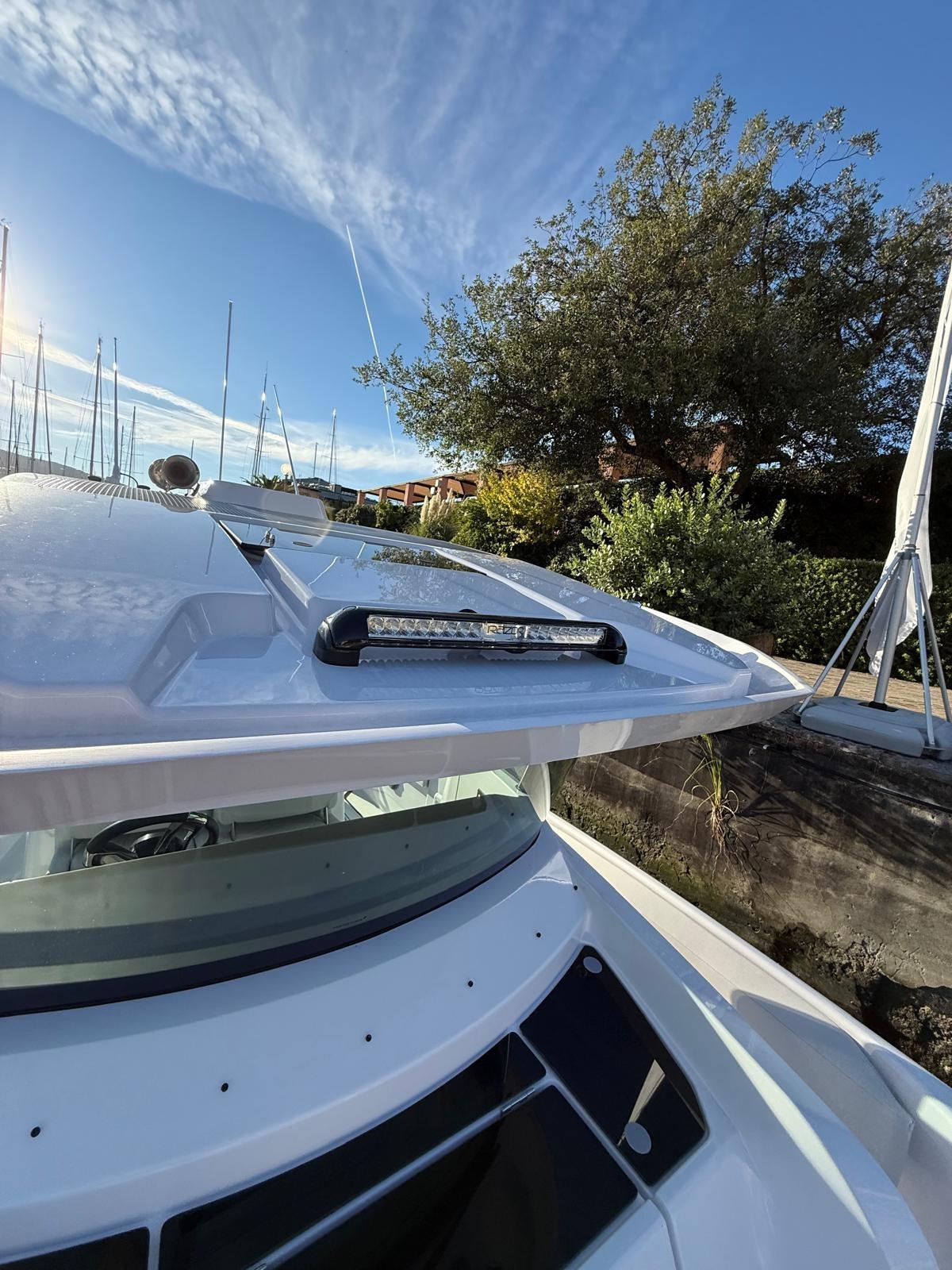 Allarme motore, Allarme sentina, Alternatore, Autoclave, Auto-Trim, Cavo corrente di banchina, Doccia esterna, Fari fissi a poppa, Flap elettrici, Hard top, Lavandino nel Pozzetto, Luci di cortesia, Luci subacquee, Pompa di sentina automatica, Pompa di sentina manuale, Pompa Lavaggio Ponte, Presa 220V banchina, Presa acqua banchina, Scaletta da bagno, Tromba.