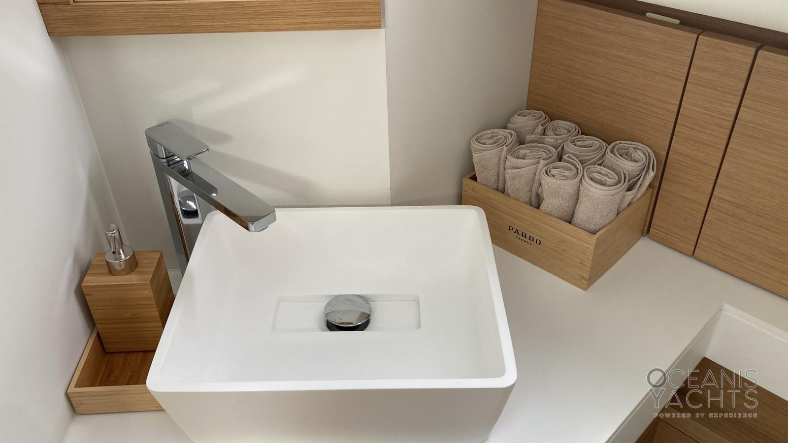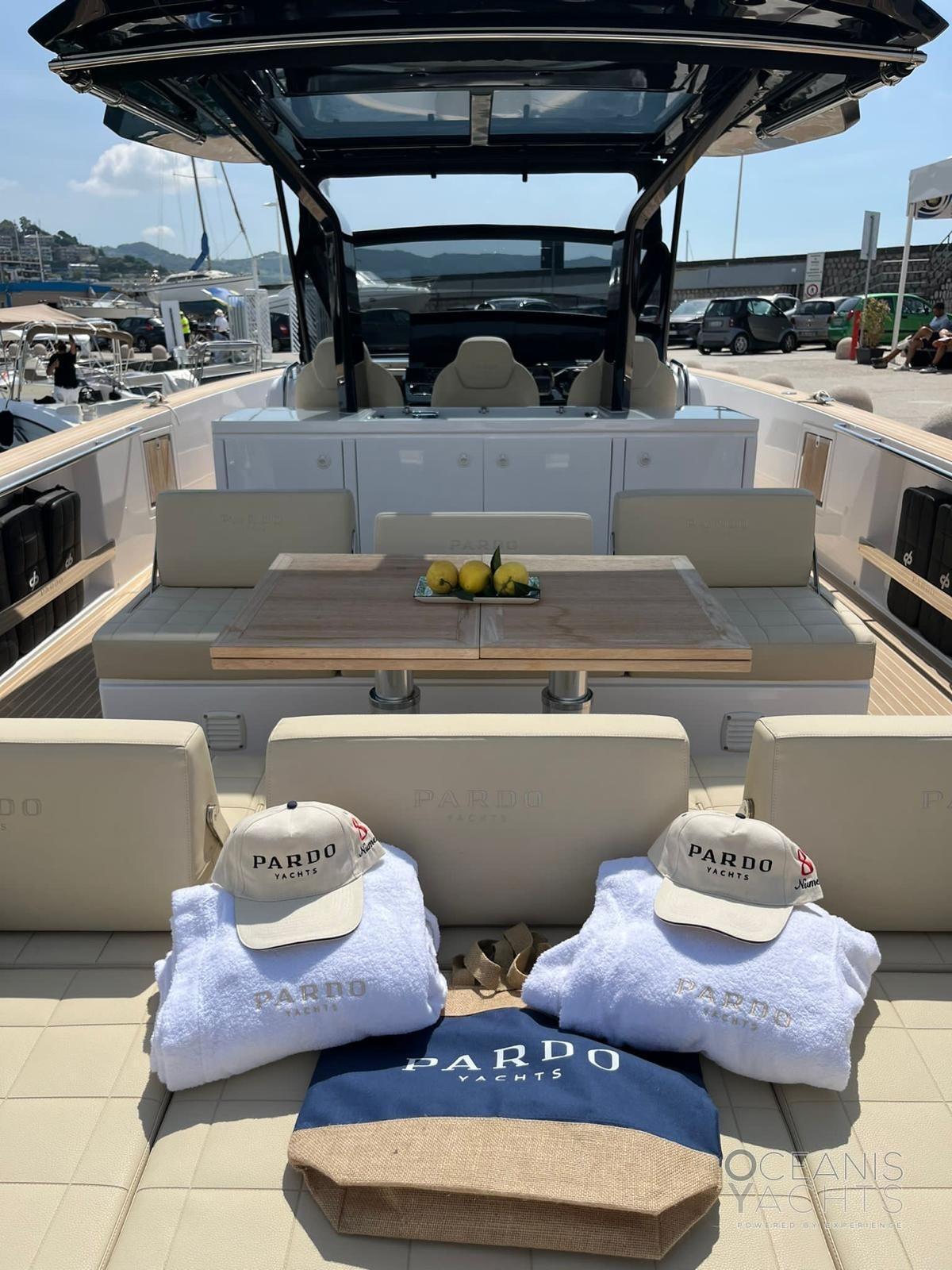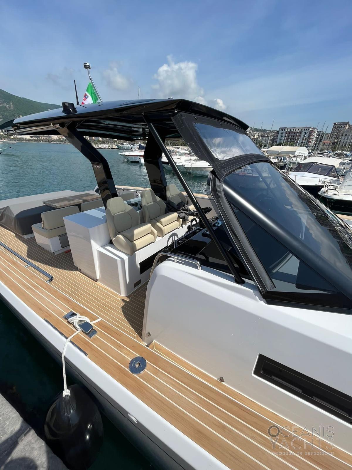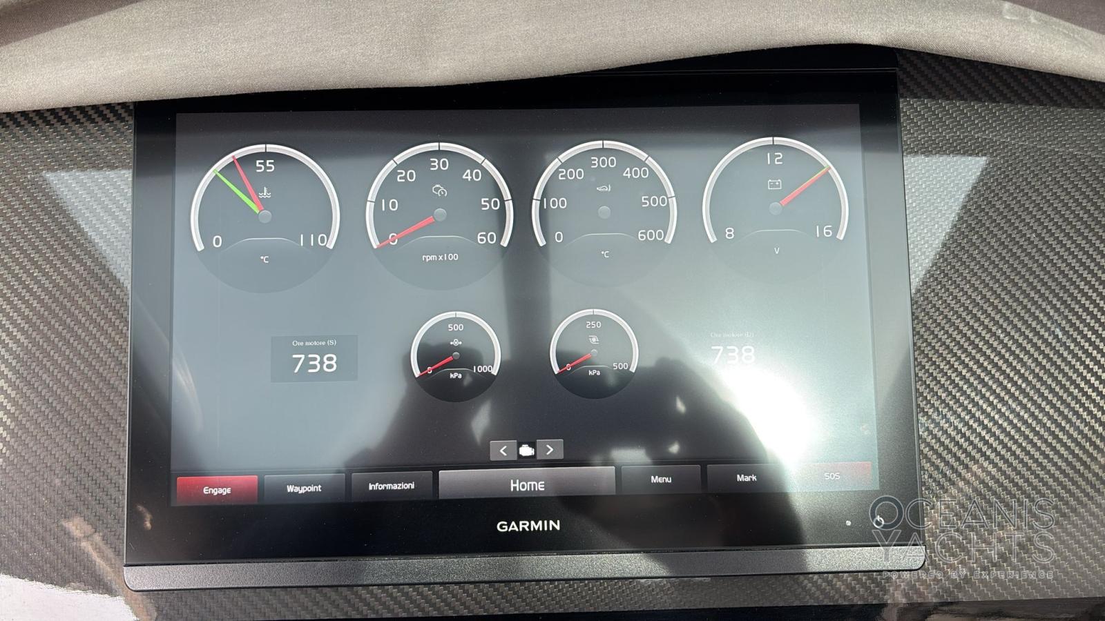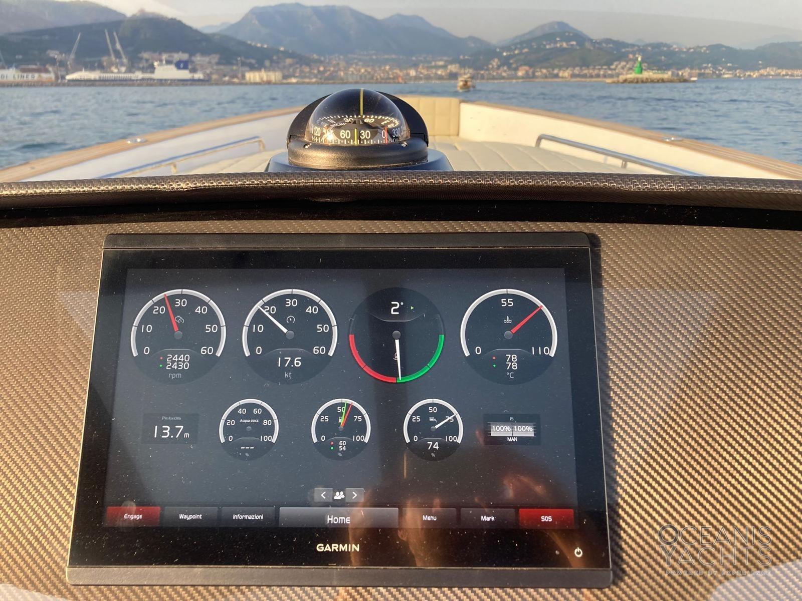 Auto Dynamic Trim Interceptor, Camminamenti laterali in teak, Doccia esterna, Garage per tender, Lavandino nel Pozzetto, Luci di cortesia, Luci subacquee, Parabordi, Passerella, Ponte in teak, Pozzetto Teak, Presa 220V banchina, Presa acqua banchina, Scaletta da bagno, Stabilizzatori, Tavolo pozzetto, Tientibene con cancelletti, Tromba, T-Top.