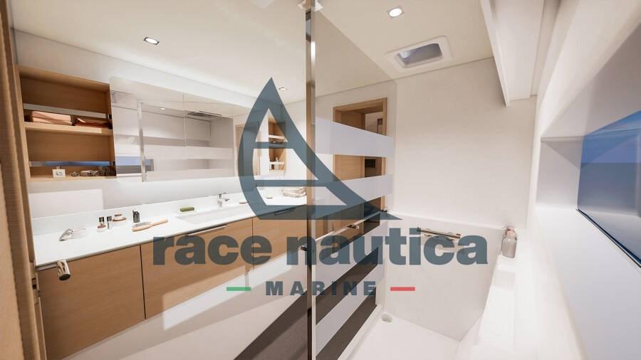 Tende nelle cabine, Kit d'ormeggio + 6 parabordi, Randa a corno full batten, Hook di randa automatico, Lazy Jack, Verricello elettrico 1500Watts, Antenna VHF in testa d'albero pre-cablata, Stopper doppi per rinvio terzaroli 2 e 3, Presa 12V interna e presa 12V stagna esterna, Lazy Bag, Doccetta di coperta (calda/fredda), Autoscato pompe di sentina, Copritimone a ruota, Winch elettrico drizze di randa, Luci interne di cortesia, Acqua si mare sotto pressione, Pack audio Fusion Bluethoot 4HP, Rete principale 220V 50Hz, Caricatore inverter 2000W, 2 motori Yanmar 57HP, Cuscineria esterna PVC Beige / Black Elios, Bimini fisso postazione di timoneria, Tavolo del fly, Cuscineria esterna del pozzetto, salone di prua e lunghe deck, Poltrona sofà a poppa sinistra, Bitte d'ormeggio supplementari, Piastra a gas integrata, allestimento front-end TB, Corrimano sulle scale, Tavolo quadrato convertibile in letto, Reti a doghe per 3 cabine, Garmin 2 Smart Cruising, Radar + supporto + cablaggio, Frigorifero di pozzetto, 5 WC elettrici in tazza grande, Climatizzatore 220V 50Hz 68K BTU, Luci di cortesia pozzetto, Batteria ausiliaria AGM 150A supplementare,Generatore 11KW 220V/50Hz, Comando verricello supplementare con contacatena, Piattaforma tender idraulica, Antifouling, Primer Epoxy, Catena + Ancora 32Kg.