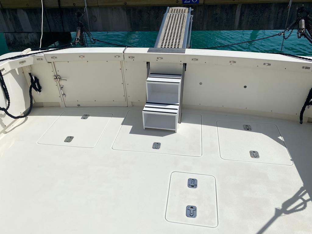 2 Allarme motore, Allarme sentina, Autoclave, Batterie (nuove 2021), Caricabatterie (12 V e 24 V), Doccia esterna, Fari fissi a poppa, Flap idraulici, Impianto antincendio (con controllo esterno), Lavaggio catena, Luci di cortesia, Passerella (elettroidraulica), Piattaforma, 3 Pompa di sentina automatica, Porta ingresso, Presa 220V banchina, Presa acqua banchina, Raddrizzatore, Salpa Ancore Elettrico, Scaletta da bagno, Tromba, Winch tonneggio di prua.