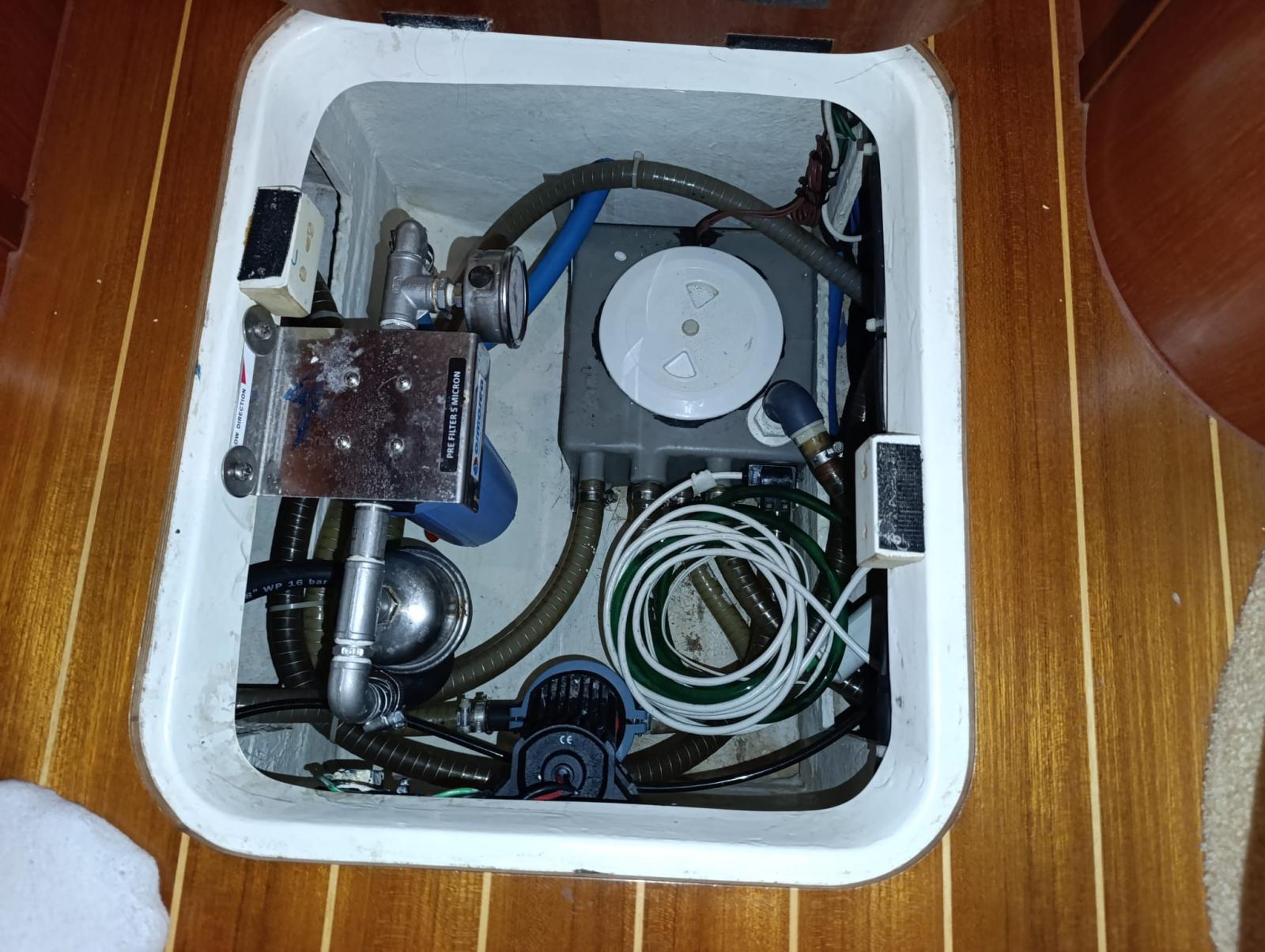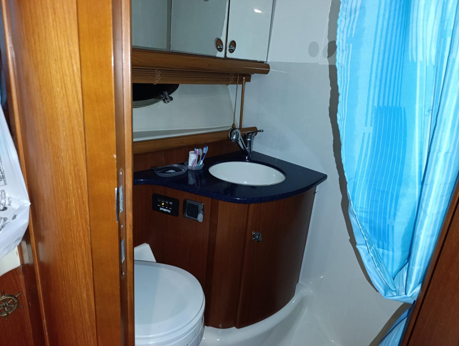 Acqua Calda, Boiler (bivalente), Clima reversibile, Dissalatore (50lh), Indicatore del serbatoio del carburante, Indicatore del Serbatoio dell’Acqua, Pavimento interno in legno, Prese interne 12v, Prese interne 220v, Serbatoio Acque Nere, 2 WC marino elettrico.