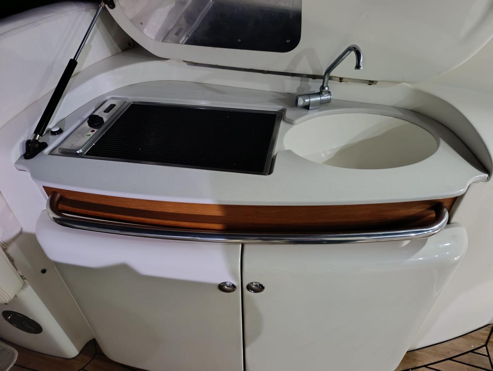 Allarme motore, Autoclave, 5 Batterie (nuove 2025), Colorazione speciale (fascia blu), Doccia esterna (calda e fredda), 2 Flap idraulici, Garage per tender, Indicatori Flaps, Lavandino nel Pozzetto, Luci subacquee, Passerella (idraulica), Piattaforma (in teak), Pompa di sentina automatica, Porta ingresso, Pozzetto Teak (nuovo 12mm), Presa 220V banchina, Presa acqua banchina, Raddrizzatore, Rollbar, Salpa Ancore Elettrico, Scaletta da bagno, Tavolo Salone Abbattibile (tavolo elettrico), Tender (+ motore fuoribordo), Tromba.