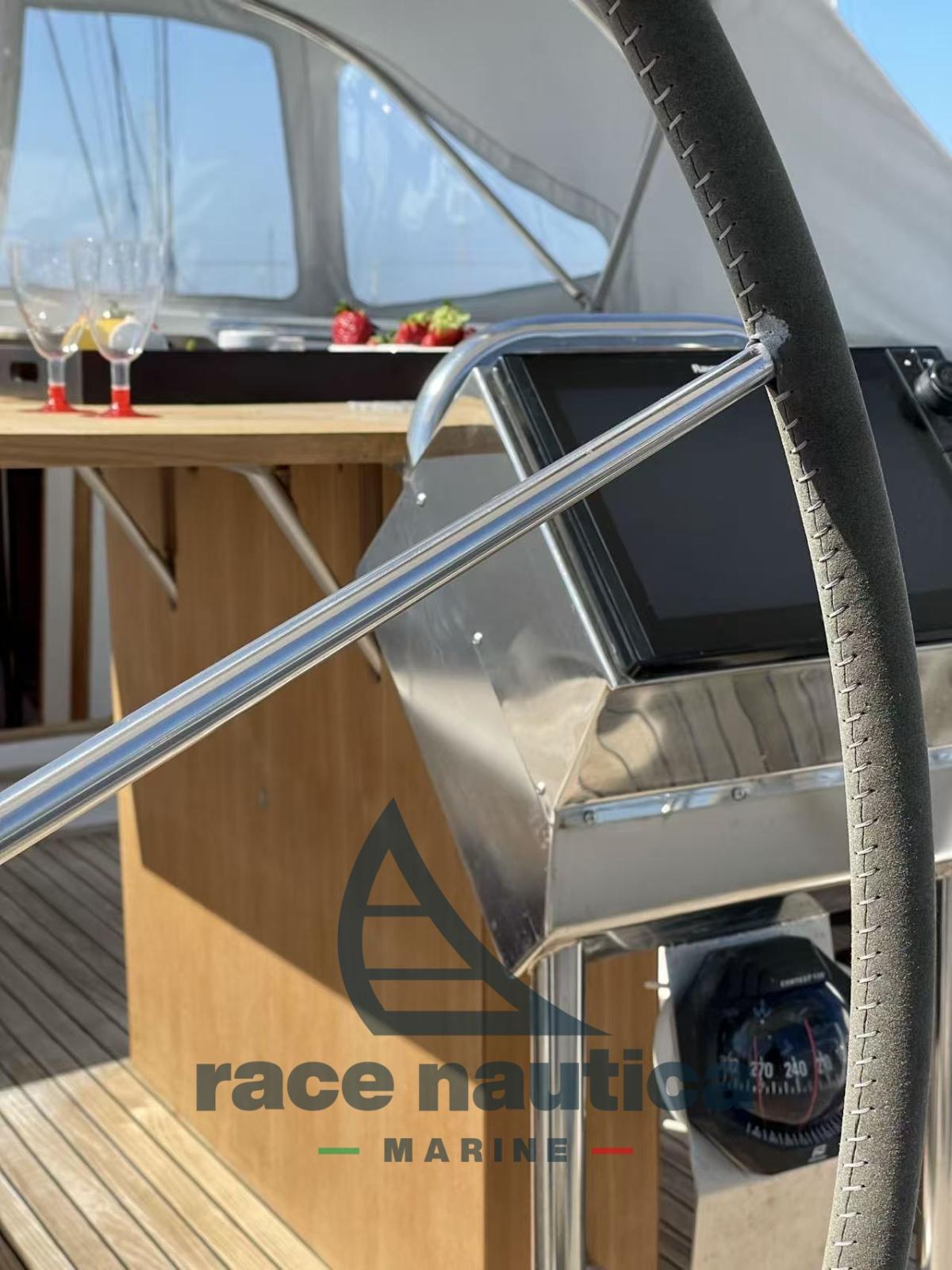 Anno 2007, 3 cabine + cabina marinaio, 3 toilette, doppio frigo, Portellone poppiero idraulico, Albero in alluminio, Boma in alluminio, 6 Winches elettrici, Doppia ruota timoneria, Vang rigido, Avvolgifiocco, Sartiame spiroidale a fili compattati, Winch elettrico/tonneggio, Ancora a ribaltino rinforzata, Trinchetta, Tormentina, Easy Bag (2021), Genoa avvolgibile, Copriboma (2021), Lazy jack, Gennaker, Manovre coperta (2021), Randa steccata con carrelli del 2021 + quella vecchia, Elica max prop. 3 pale, Elica di prua, Cucina, Forno, Freezer, Stazione vento, VHF, Log, Chartplotter Doppia stazione 2017, Ecoscandaglio, Pilota automatico doppia stazione, Pompe di sentina, Batteria motore 100° del 2021, 6 Batterie servizi del 2021 da 120A, Caricabatterie, Boiler, Doccia esterna calda/fredda, Generatore Panda 5Kw, Salpa ancora elettrico, Dissalatore, Tavolo pozzetto in teak, Dotazioni di sicurezza, Cap. Paraspruzzi, Ancora e catena, Zattera rev. 2026, Tendalino del 2021, Riscaldamento Webasto, Pompe di acqua di mare, Passerella idraulica, Tvolo dinette del 2021 top ceramica, Marerassi memory, Telefono satellitare, RIvestime ti sunbrella 2021, 2 puff in pelle del 2024, Radar del 2017, Tender Motore Honda, Impianto HIFI TV, Aria condizionata.