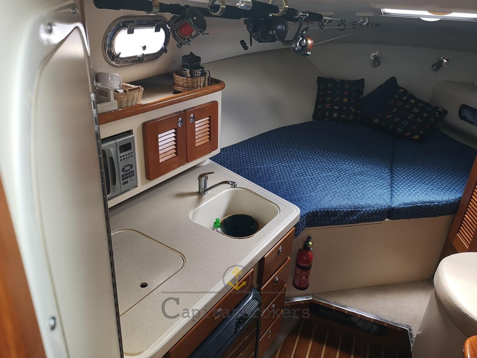 adulto a centro barca ,cucina con lavello angolo cottura forno e micronde