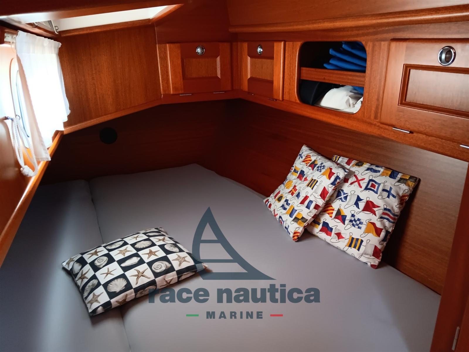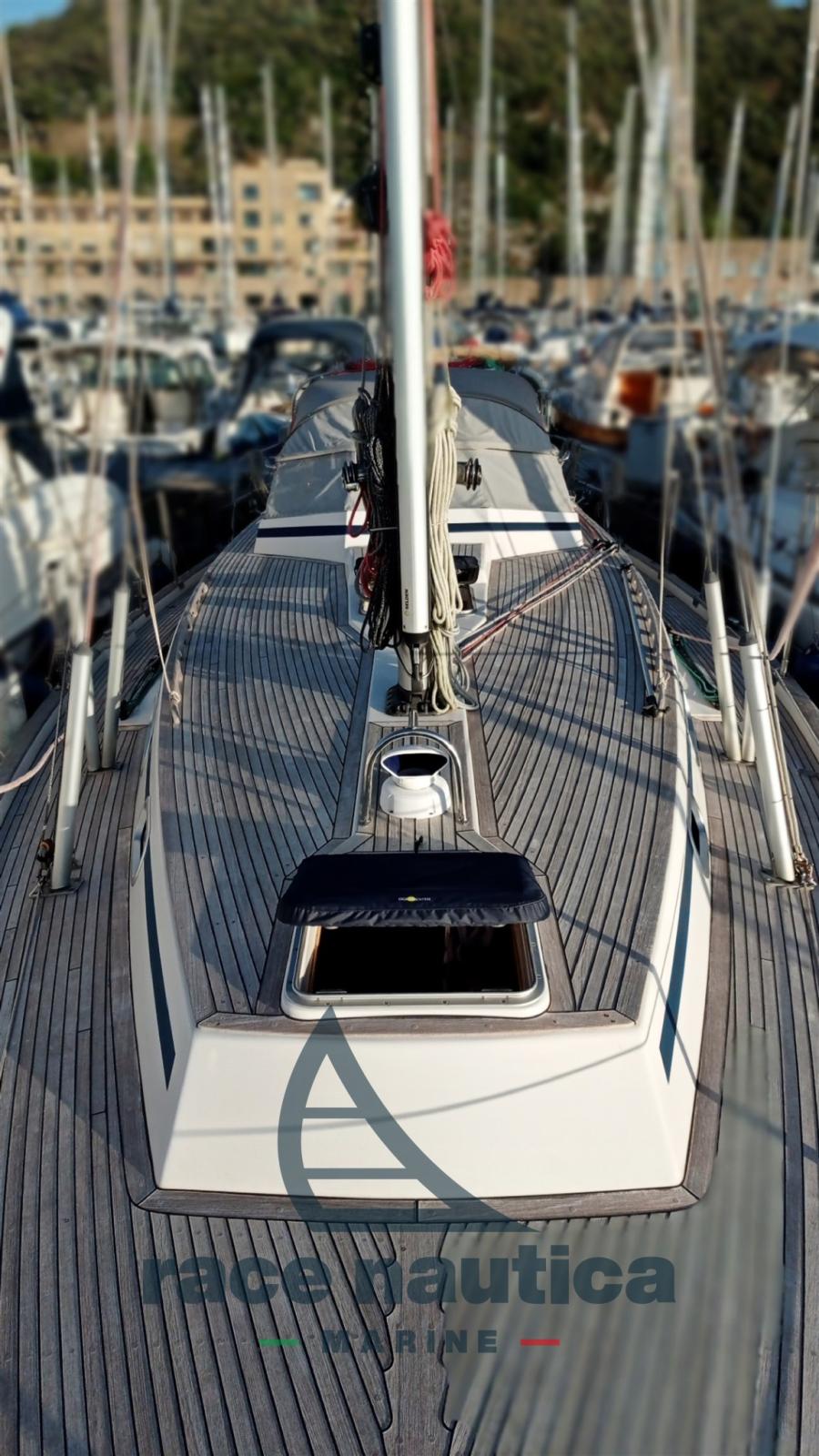 Albero Seldèn con randa avvolgibile steccata verticalmente, Ropercutter sull'asse dell'elica, Giunto flessibile dell'albero dell'elica Acqua Drive, Vang Seldèn nuovo del 2020, Sistema avvolgifiocco Harken con genoa avvolgibile, Bompresso Gennaker, Tangone Spinnaker con sollevamento, Drizza spinnaker (con bozzelli, scotte... ), Sistema strallo Solent retrattile, 2 Winchs inox Andersen elettrici, Winch inox Andersen elettrico per avvolgifiocco lato sinistro, Winch inox Andersen per scotta randa lato destro, 2 Winchs inox Andersen all'albero per drizze, Linee di sicurezza sul ponte – punti di attacco delle linee di sicurezza in pozzetto, Cancelli di ringhiera a dritta ed a sinistra, Striscia di protezione in alluminio extra sul listello del piede, Randa e Genoa 150% nuovi del 2017, Code0 con sistema avvolgitore UbiMayor, Solent con sistema avvolgitore UbiMayor, Gennaker, Raymarine ST60, Autopilota Raymarine ST6001,Chartplotter Raymarine Axiom 10", Ricevitore Navtex ICS nav6, Raymarine Ray 230e VHF con culla extra in pozzetto, Radio CD con 2 altoparlanti nel salone + 2 altoparlanti in pozzetto + altoparlante per bassi extra all'interno, Propulsore di prua Sleipner SP95, Alimentazione da banchina 220V con interruttore differenziale e diverse prese di corrente, Caricabatterie Victron Phoenix Smart IP43 nuovo del 2023, Victron Smart Shunt 500A-50mV nuovo del 2023, Caricabatterie Victron CD-CD Orion non isolato nuovo del 2023, Victron Smart Solar MPPT/75/10 nuovo del 2023, 3 Batterie di servizi Victron AGM Deep Cycle nuove del 2021, Batteria motore 90Ah nuova del 2021, Isolatore Galvanico, Verricello elettrico ancora, 50mt di catena inox, Ancora Rocna ed ancora Bruce di rispetto, Riscaldamento Eberspacer D5L-C revisionato a dicembre 2023 con sostituzione marmitta, Luci nell'arco di tuga, Luce di ancoraggio a 3 colori LED in testa d'albero, Solenoide per chiudere le bombole del gas, Presa 12V del supporto del timone, Scaldabagno Isotherm 40lt, Tavolo del pozzetto, Tientibene in acciaio inox sul lato sinistro e destro del parabrezza, Gavone esterno con doppia bombola del gas, Acqua corrente calda/fredda, Doccia del pozzetto, Locale doccia separato extra con sedile e pompa di doccia, Barra appendi-abiti, Oblò extra sulla tuga, Doppio lavello inox, Cucina a 2 fuochi, Forno, Frigorifero Isotherm con congelatore, Zattera revisionata nel 2024, Scaletta extra per bompresso, Riflettore radar, Orologio, Igrometro, Barometro, Moquette su tutti i pavimenti interni, Riflettore Radar, Oscuramento rollo ocean ari sotto il portello di prua e nella cabina principale, Cappottina paraspruzzi e tendalino nuovi del 2024, Luci interne ed esterne a LED, Tendalino extra, Pompa completa del WC di rispetto, Cinghia per l'alternatore di rispetto, Pompa per l'espulsione dell'acqua della doccia di rispetto, Serie completa di filtri per gasolio ed olio motore di rispetto,Girante di rispetto, Strallo amovibile in spiroidale di acciaio inox completo di tenditore a volantino (da montare in opera per l'uso di un solent con garrocci) di rispetto.