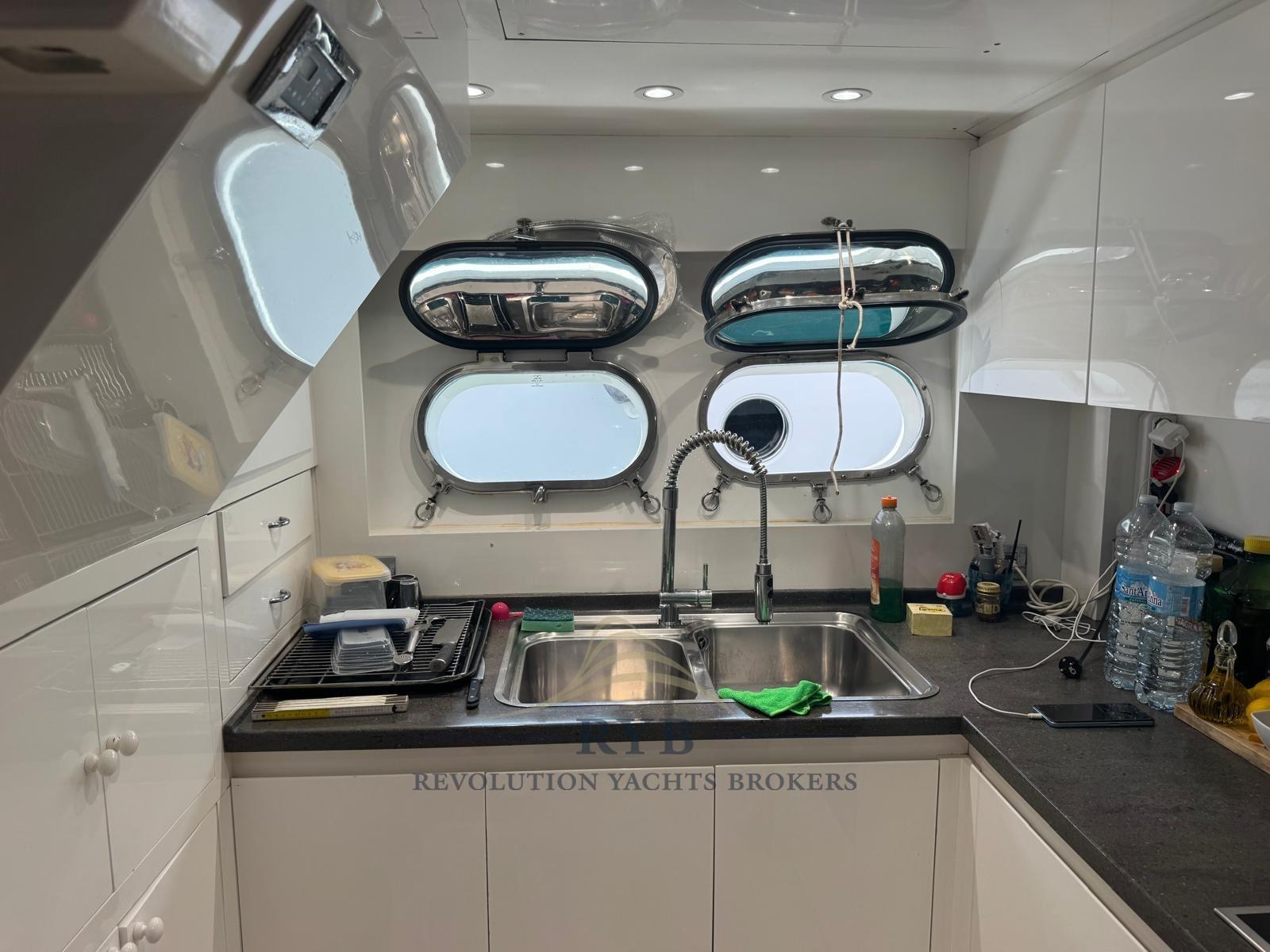 Camminamenti laterali in teak, Garage per tender, Impianto antincendio, Luci di cortesia, Passerella (IDRAULICA A SCOMPARSA), Piattaforma (TEAK), Porta ingresso, Pozzetto Teak, Presa 220V banchina, Salpa Ancore Elettrico, Scaletta da bagno.
