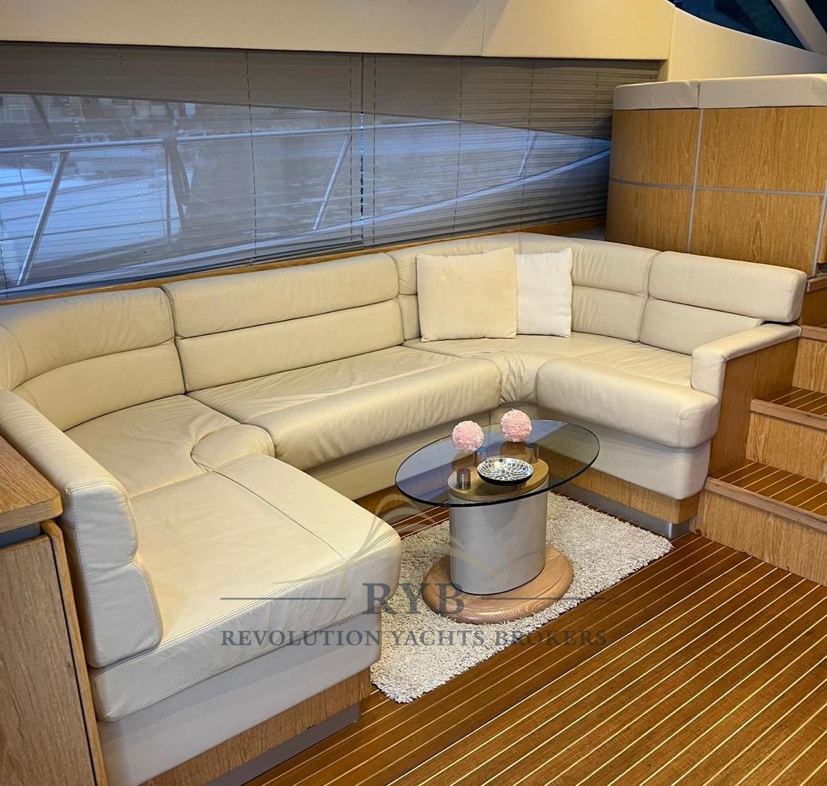 Barca molto spaziosa dalle linee moderne e fluide. Grandi spazi sia interni che esterni.