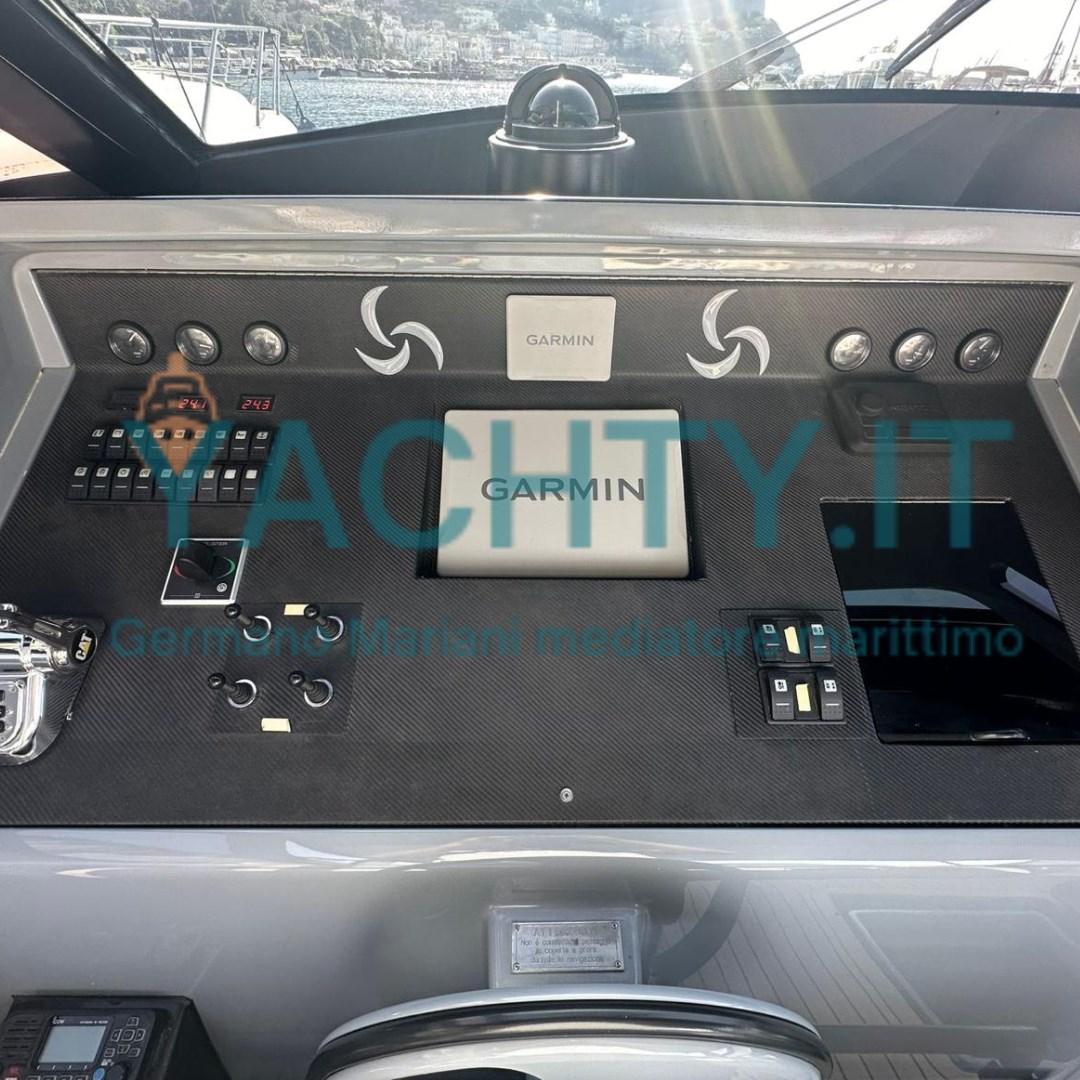 La motorizzazione è affidata a potenti **2 x Caterpillar DITA C12 da 715 HP**, abbinati a trasmissioni con eliche di superficie Arneson, una configurazione che garantisce performance straordinarie, accelerazioni brillanti e una navigazione estremamente emozionante.