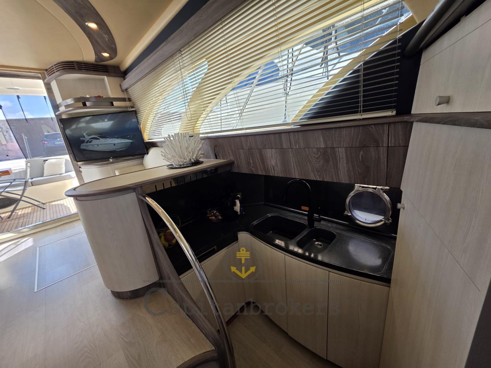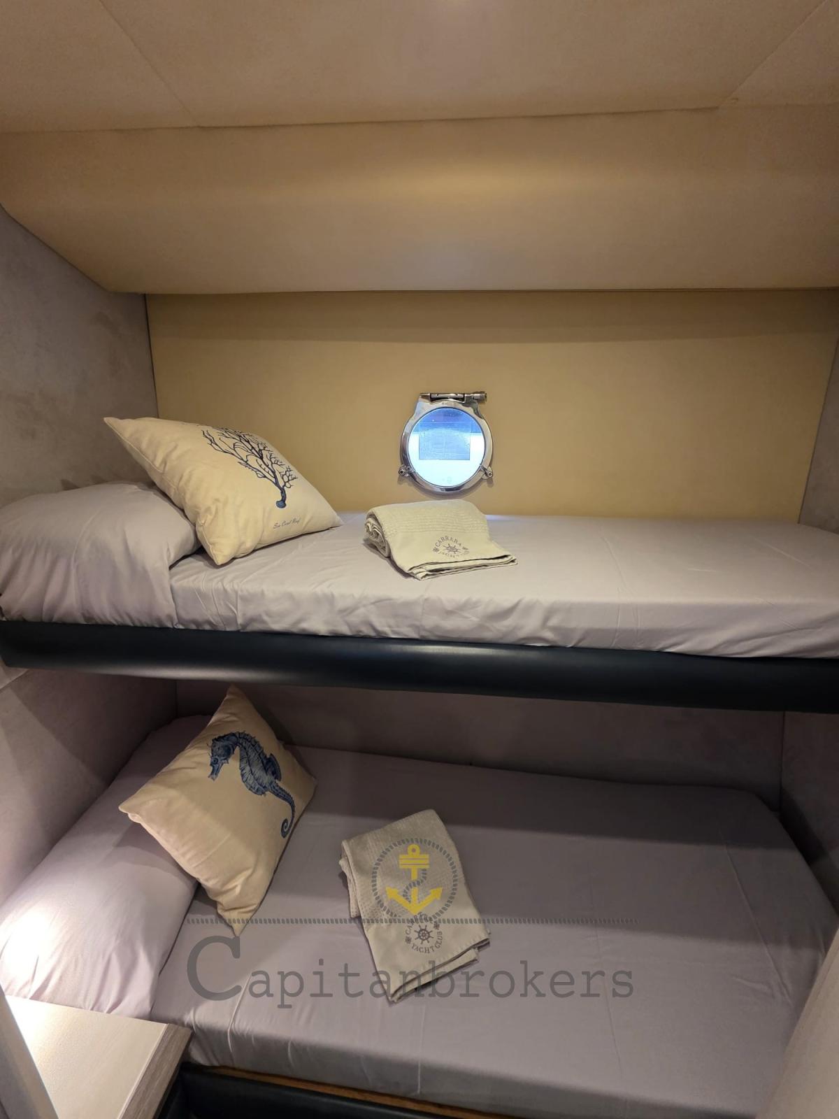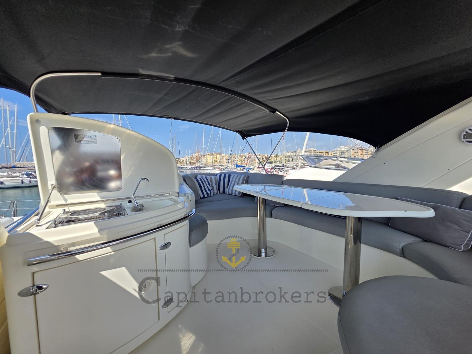 Allarme motore, Allarme sentina, Autoclave, 8 Batterie, Doccia esterna, Doppia timoneria, Impianto antincendio, Indicatori Flaps, Lavandino nel Pozzetto, Luci di cortesia, Luci subacquee, Passerella, Piattaforma (in teak), Pompa di sentina automatica, Pompa di sentina manuale, Porta ingresso, Pozzetto Teak, Presa 220V banchina, Presa acqua banchina, Salpa Ancore Elettrico, Scaletta da bagno, Tavolo pozzetto (in teak), Tromba.