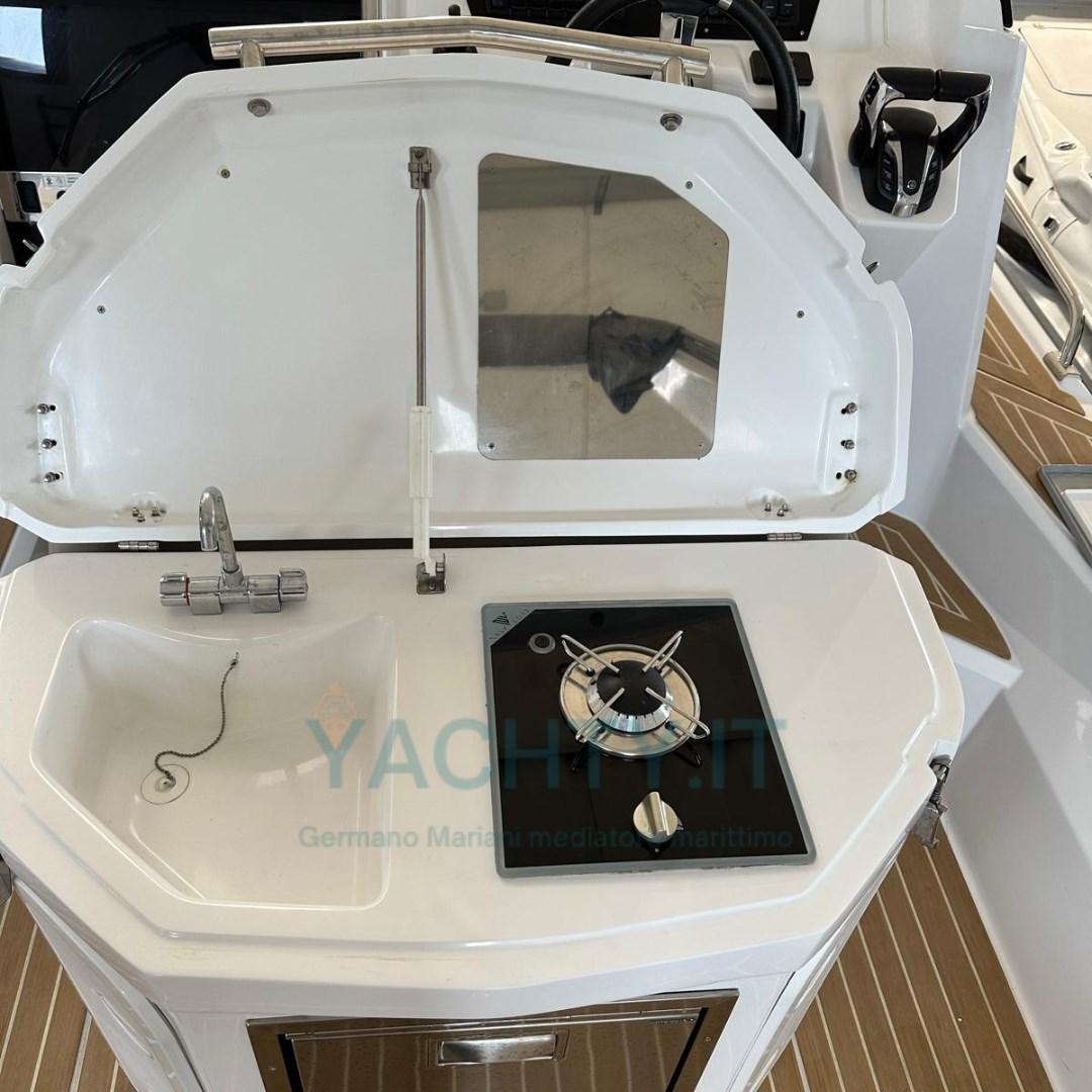 Ampi prendisole, spazi ben organizzati e motorizzazione potente ed affidabile rendono questa imbarcazione perfetta per uscite giornaliere e weekend in mare.