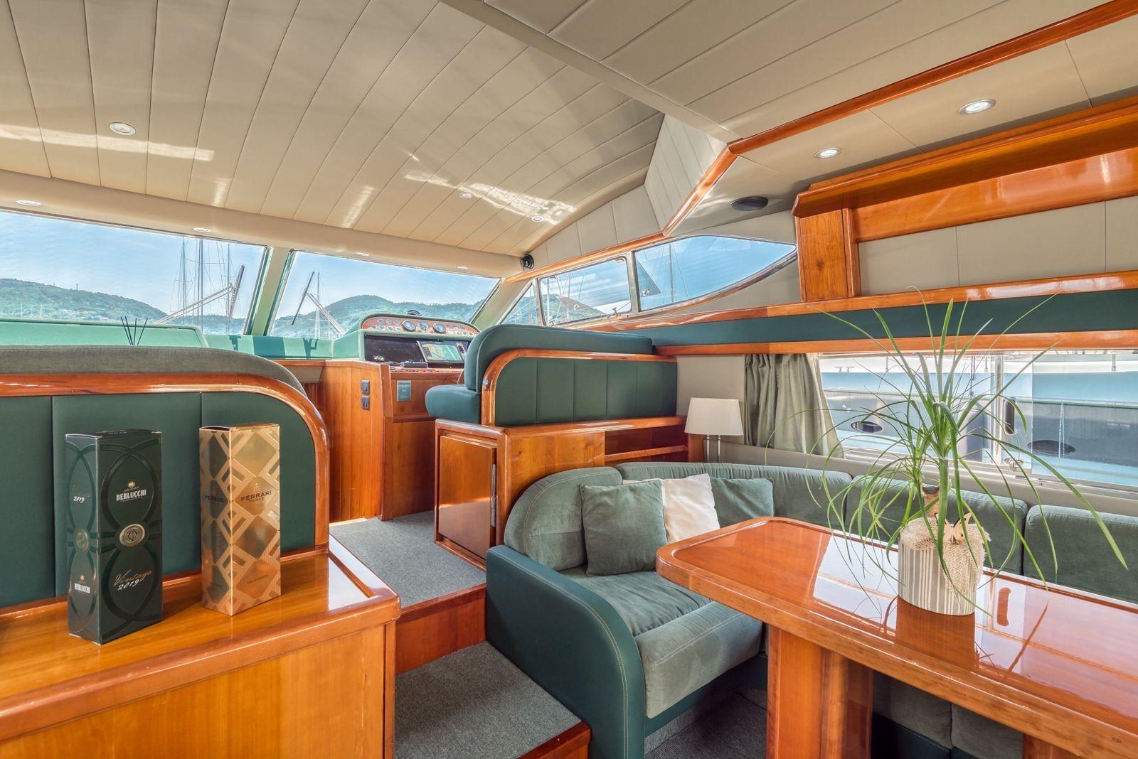 ponte e pozzetto teak con tavolo e sedie; manette elettroniche ; gruetta Besenzoni sul fly; luci a led; telecamere interne; imbarcazione in condizioni superlative; 2022 NUOVO: tessuti salone , plotter 12" e 7 fly , ecoscandaglio, sbarcati motori e rifatti a zero ore , 2 autoclave, pilota automatico ; 2024 NUOVO: 8 batterie, ice-maker, centralina passerella idraulica, cuscinerie esterne, tendalini,, salpancora, ancora Delta 25 kg, 90 mt catena, contametri , prese a mare, moquette, lavello ; 2025 NUOVO: generatore, lucidatura scafo, antivegetativa a giugno; mediazione del 5% +IVA 22% a carico dell' acquirente (IVA si calcola sull' importo della mediazione) .