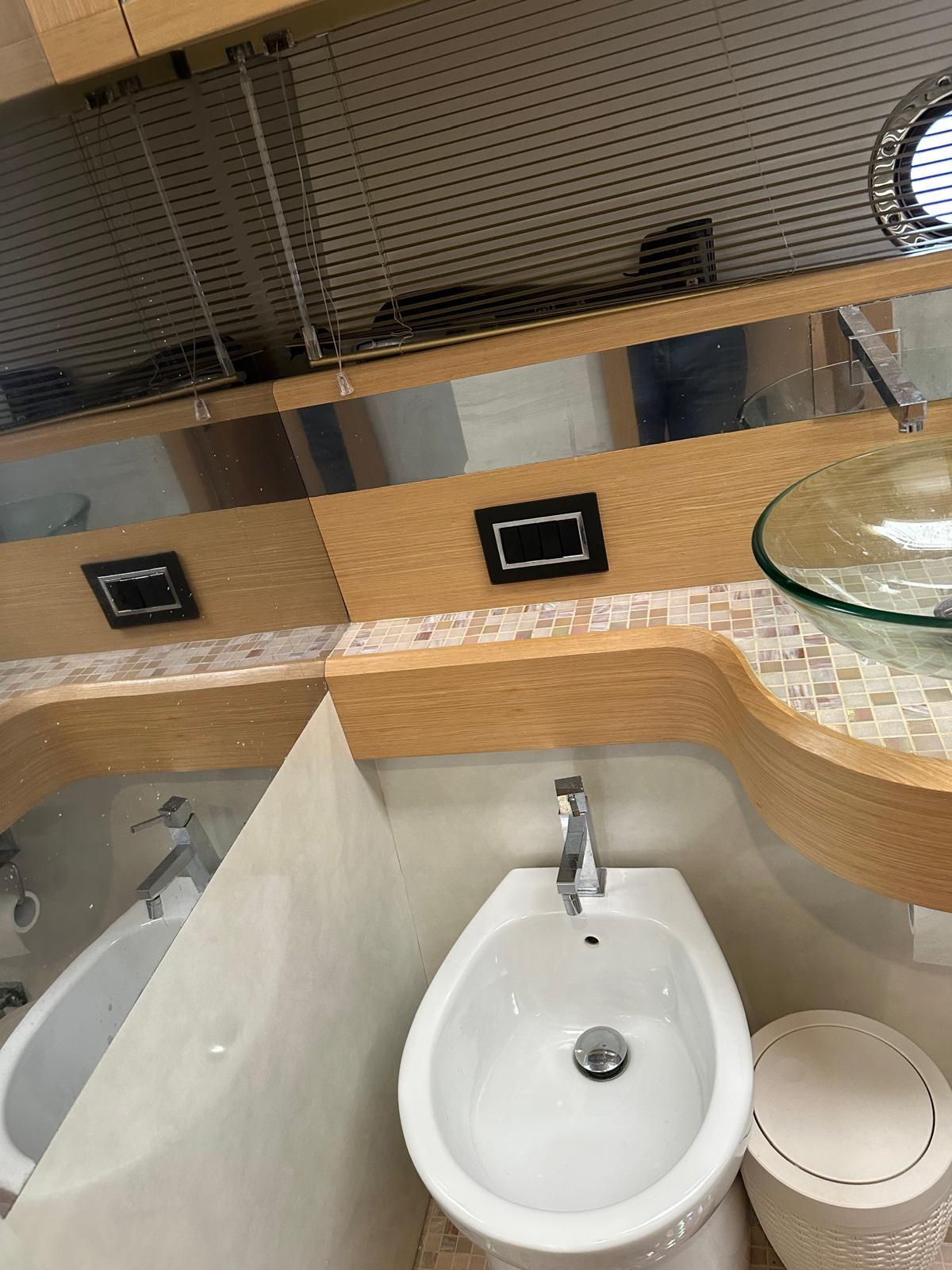Boiler, Clima reversibile, Dissalatore, Impianto acque nere, Pavimento interno in legno, Prese interne 12v, Prese interne 220v, Serbatoio Acque Nere, Telecamera, WC marino elettrico.