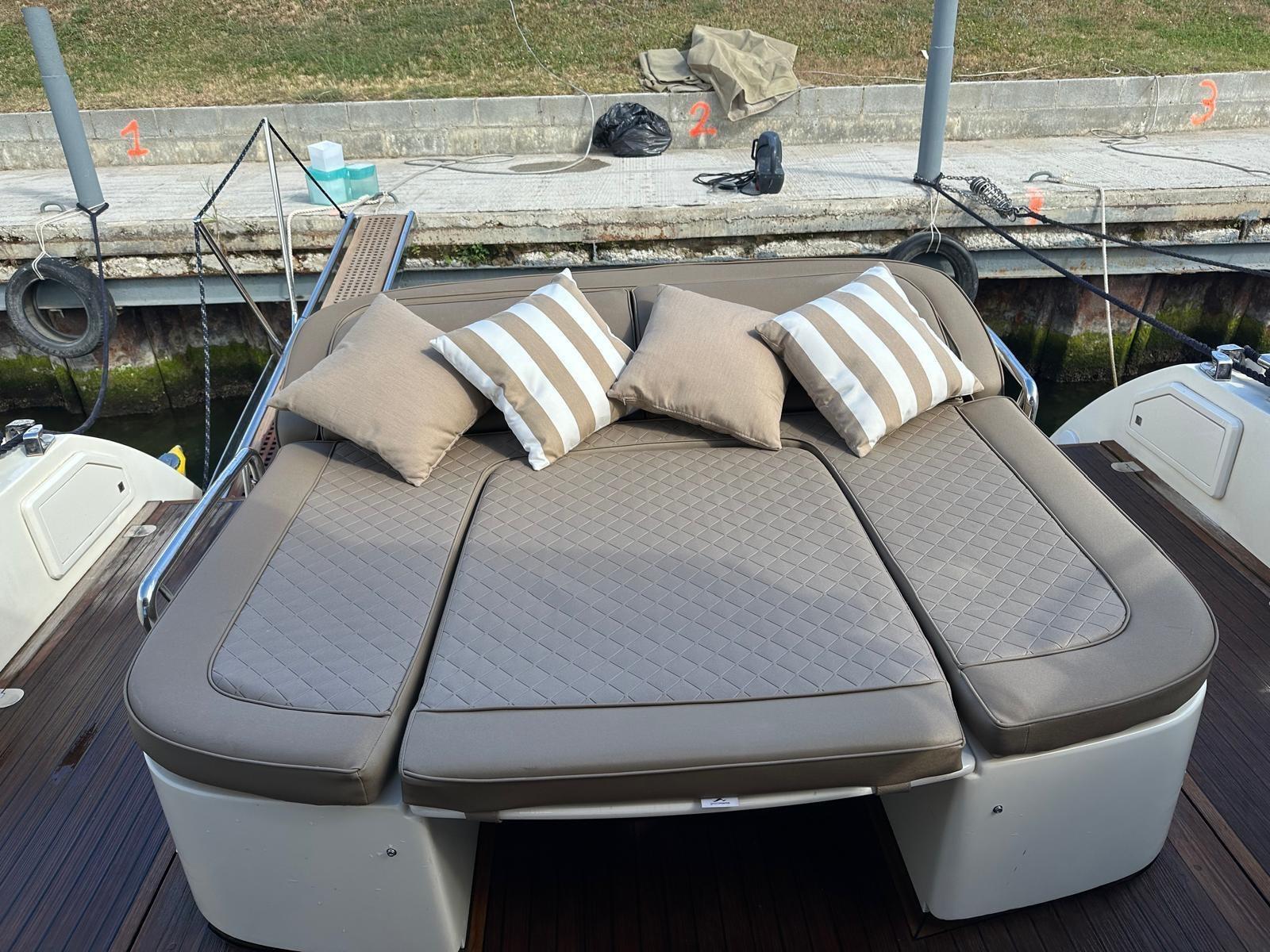 Allarme motore, Allarme sentina, Alternatore, Apertura Vano Motore Elettrica, Autoclave, Colorazione speciale (CARTA ZUCCHERO CANGIANTE), Doccia esterna, Faro orientabile, Flap elettrici, Hard top, Impianto antincendio, Luci di cortesia, Passerella, Piattaforma, Pompa di sentina automatica, Pompa di sentina manuale, Porta ingresso, Pozzetto Teak, Presa 220V banchina, Salpa Ancore Elettrico, Scaletta da bagno, Tavolo pozzetto (ELETTRICO A SCOMPARSA), Tientibene con cancelletti, Tromba, Winch tonneggio di poppa.