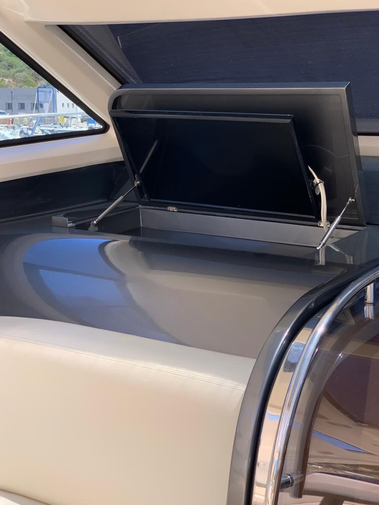 Allarme motore, Allarme sentina, Autoclave, Colorazione speciale (scafo BLU), Doccia esterna, Flap elettrici, Garage per tender, Hard top, Impianto antincendio, Lavandino nel Pozzetto, Luci di cortesia, Passerella, Piattaforma, Pompa di sentina automatica, Pompa di sentina manuale, Pozzetto Teak, Presa 220V banchina, Salpa Ancore Elettrico, Scaletta da bagno, Tavolo pozzetto, Tromba.