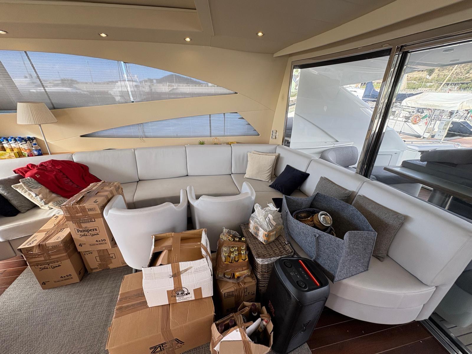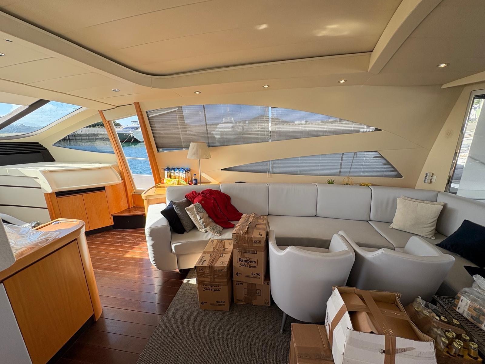 Acqua Calda, BBQ/ Grill, Boiler, Clima reversibile, Controllo Domotica (NAVIOP), Dissalatore, Impianto acque nere, Pavimento interno in legno, Prese interne 12v, Prese interne 220v, Serbatoio Acque Nere, WC marino elettrico.