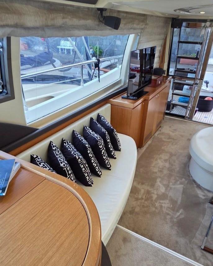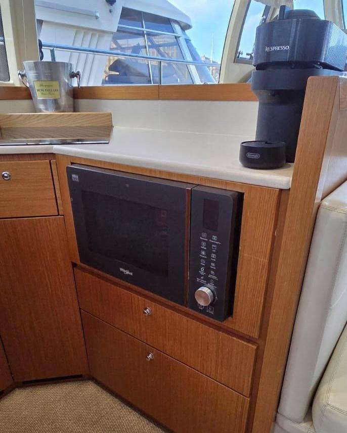 Acqua Calda, BBQ/ Grill, Boiler, Clima reversibile, Collegamento internet, Impianto acque nere, Indicatore del serbatoio del carburante, Indicatore del Serbatoio dell’Acqua, Indicatore della pressione dell’olio nel motore, Pavimento interno in legno, Prese interne 12v, Prese interne 220v, Telecamera, 2 WC marino elettrico.