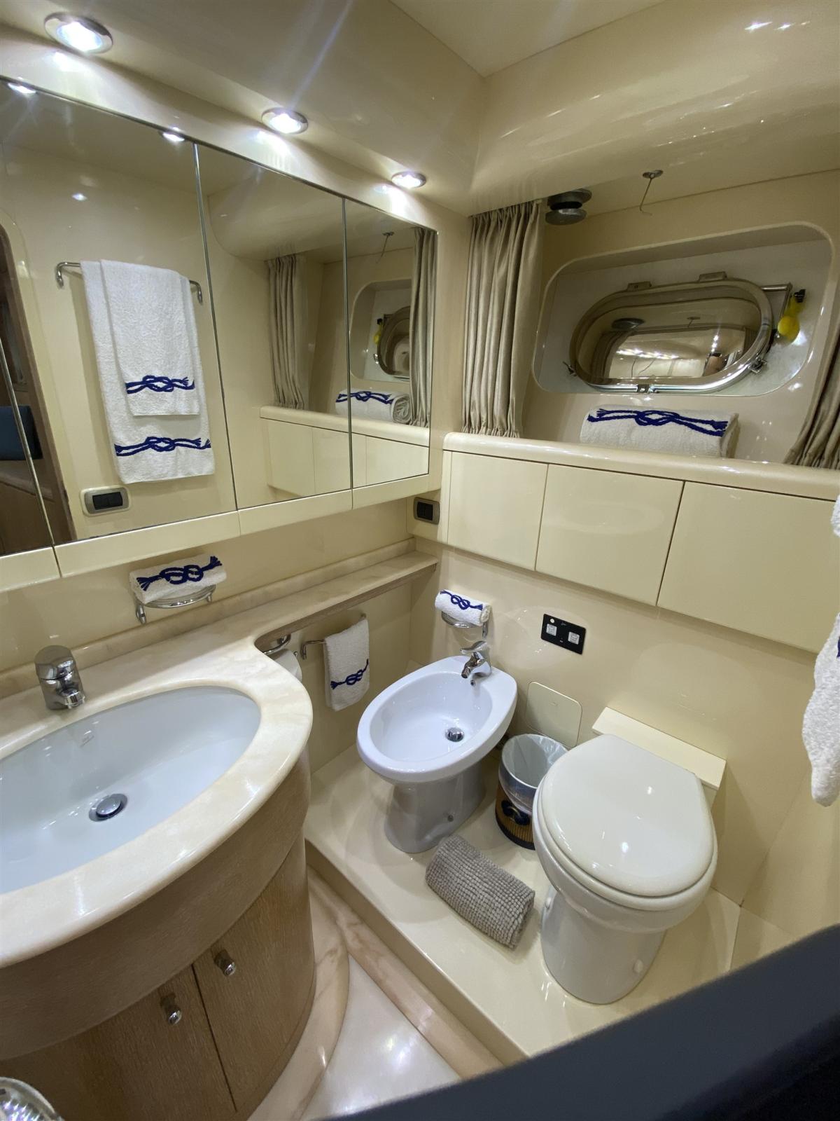 Aria condizionata (IN OGNI AMBIENTE CON TERMOSTATI REGOLABILI INDIPENDENTEMENTE), Boiler (ELETTRICO 220V), Dissalatore, Inverter (MASTERVOLT 1500W), Prese interne 12v, Prese interne 220v, Telecamera, WC marino elettrico.