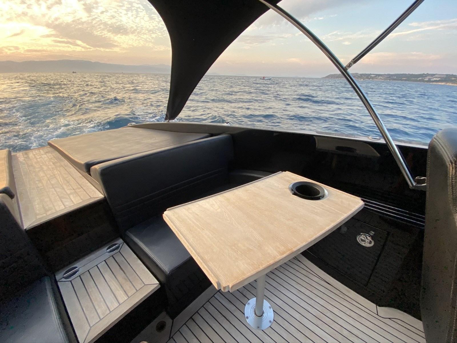 Allarme motore, Allarme sentina, Autoclave, Flap elettrici, Pozzetto Teak, Presa 220V banchina, Salpa Ancore Elettrico, Tavolo pozzetto, Tuga in teak.