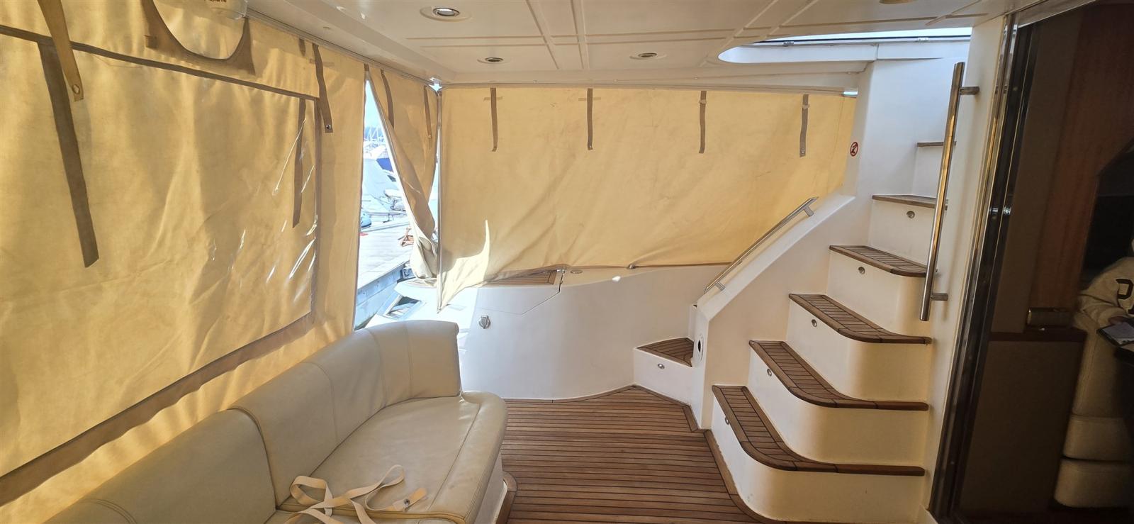 Allarme fumo/gas, Allarme motore, Allarme sentina, Autoclave, Doccia esterna, Faro orientabile, Flap elettrici, Impianto antincendio, Indicatori Flaps, Lavandino nel Pozzetto, Luci di cortesia, Luci subacquee, Pompa di sentina automatica, Pompa di sentina manuale, Pozzetto Teak, Presa 220V banchina, Presa acqua banchina, Salpa Ancore Elettrico, Scaletta da bagno, Selle per Tender, Tavolo pozzetto, Tender, Tromba, 2 Winch tonneggio di poppa.