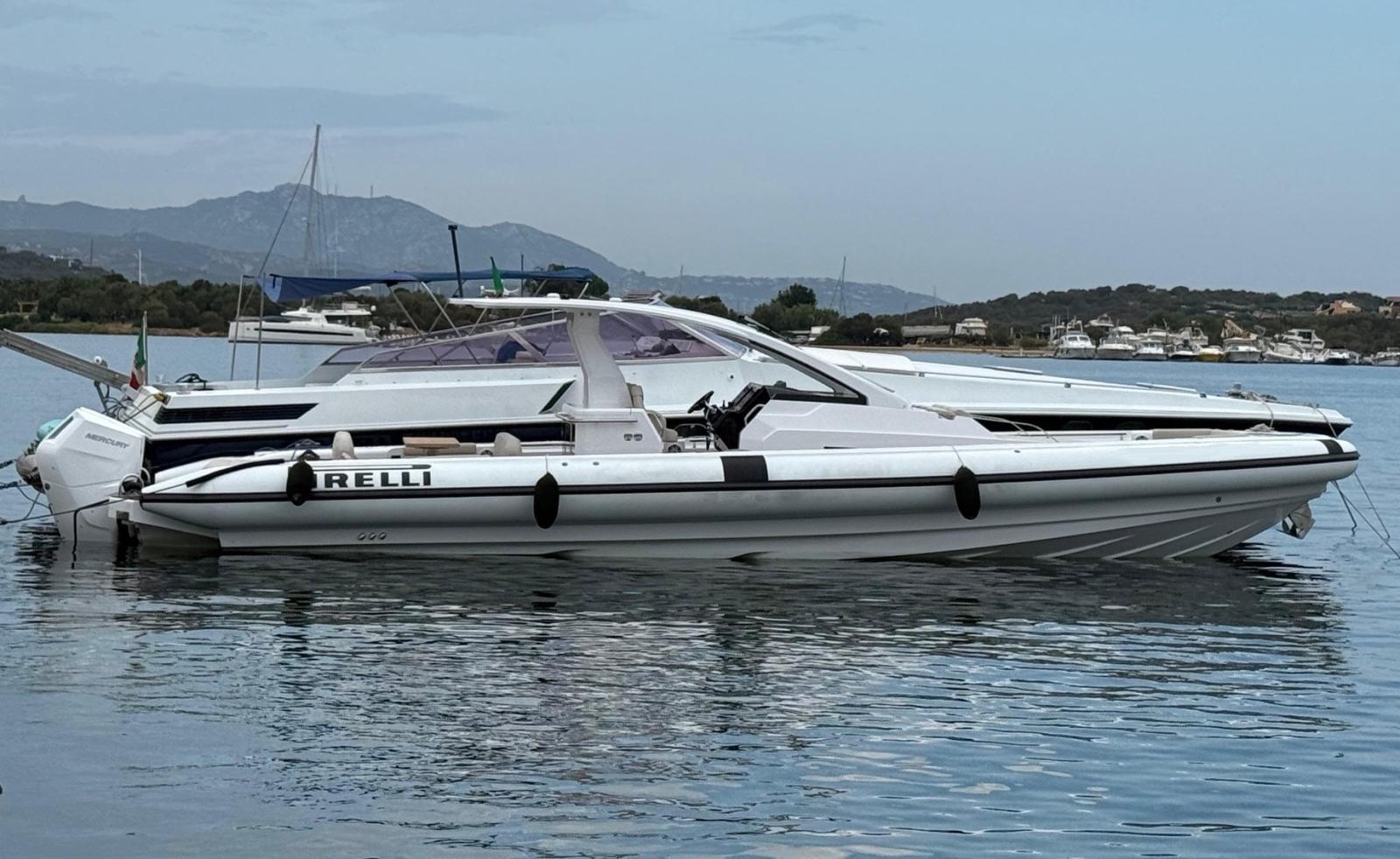 Allarme motore, Allarme sentina, Alternatore, Ancora (e catena in inox), Autoclave, Bitte Abbattibili, Camminamenti laterali in teak, Cavo corrente di banchina, Doccia esterna, Lavandino nel Pozzetto, Luci di cortesia, Luci subacquee, Piattaforma, Pompa di sentina automatica, Pompa di sentina manuale, Ponte in teak, Pozzetto Teak, Presa 220V banchina, Salpa Ancore Elettrico, Scaletta da bagno (+ seconda scaletta aggiuntiva), Tavolo pozzetto, Tromba, T-Top (con prolunga in carbonio).