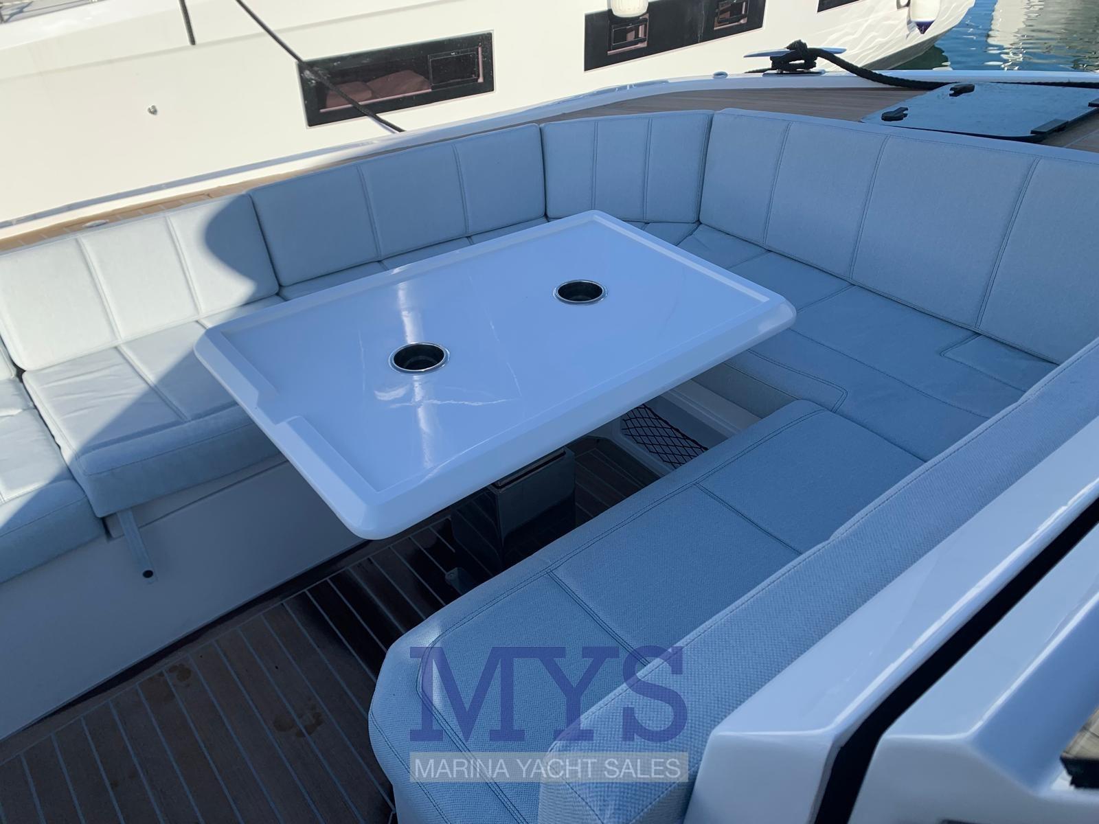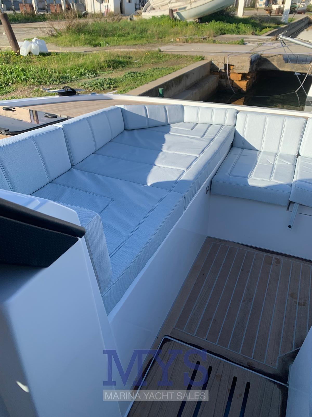 Un 38 piedi che sembra molto più grande: ampie zone esterne vivibili, interni luminosi e ben distribuiti, perfetta continuità tra interno ed esterno
