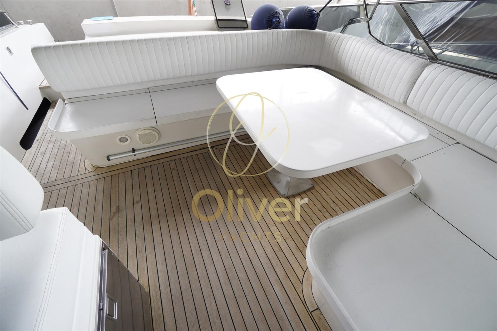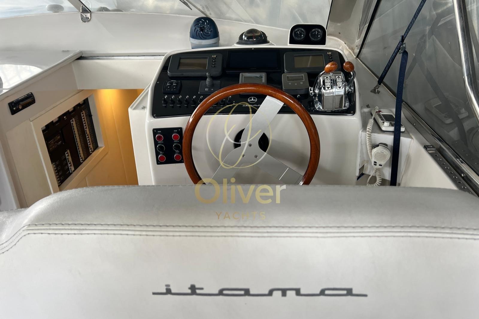 Angolo barra, Contametri catena, Contaore, Cronometro, Display (GARMIN), Ecoscandaglio (GARMIN), GPS (GARMIN), Log (GARMIN), Monitor dei consumi, Pilota automatico (RAYMARINE), Plotter (GARMIN), Plotter con antenna GPS (GARMIN), Quadro comandi, Sedile Copilota, Strumenti di misura per motori.