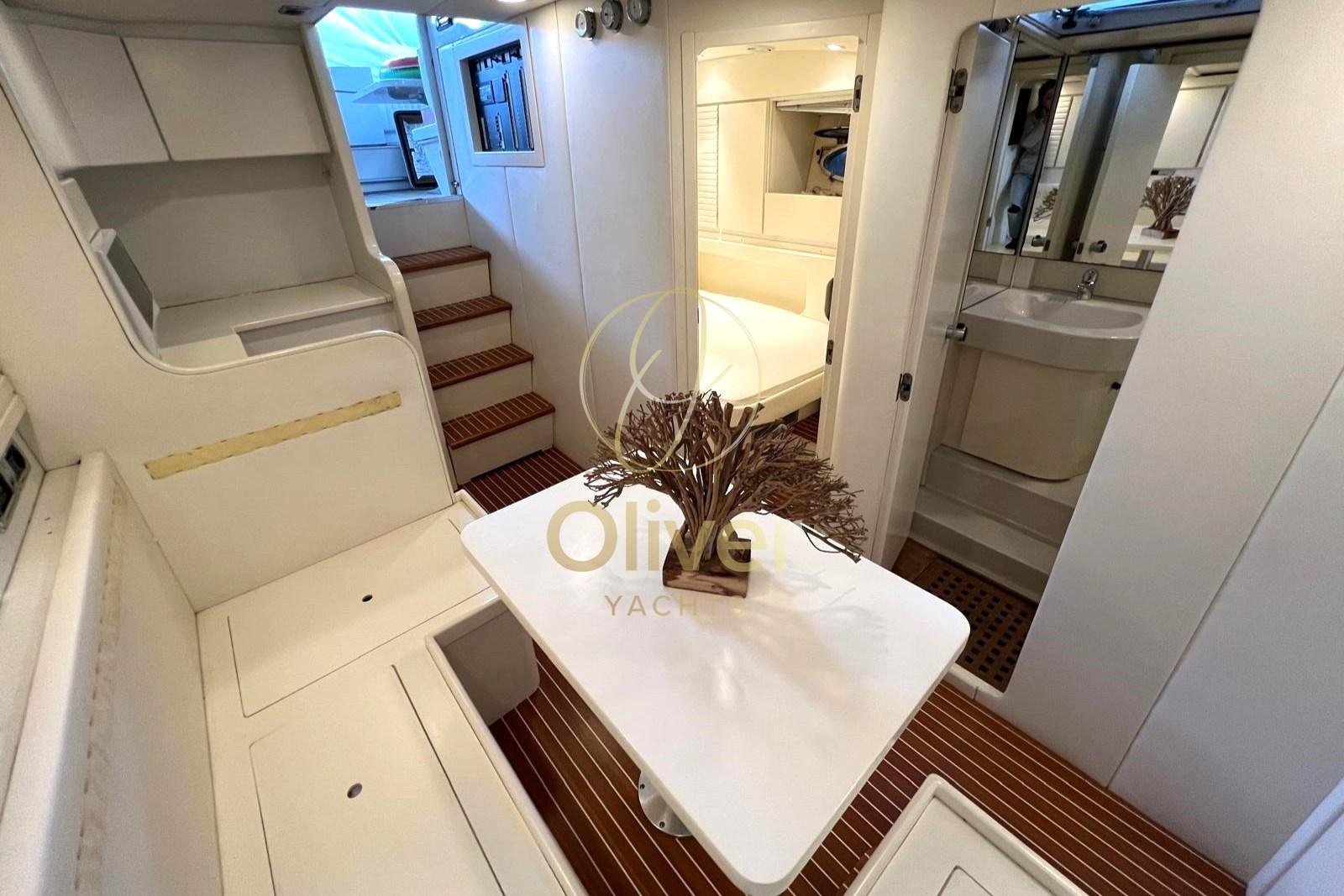 Il layout prevede due cabine principali servite da un bagno, a cui si aggiunge un secondo bagno realizzato nella precedente cabina marinaio, oggi trasformata in una cabina ospiti indipendente. Un upgrade concreto che aumenta la fruibilità dell’imbarcazione e la rende più versatile rispetto alla configurazione originale.