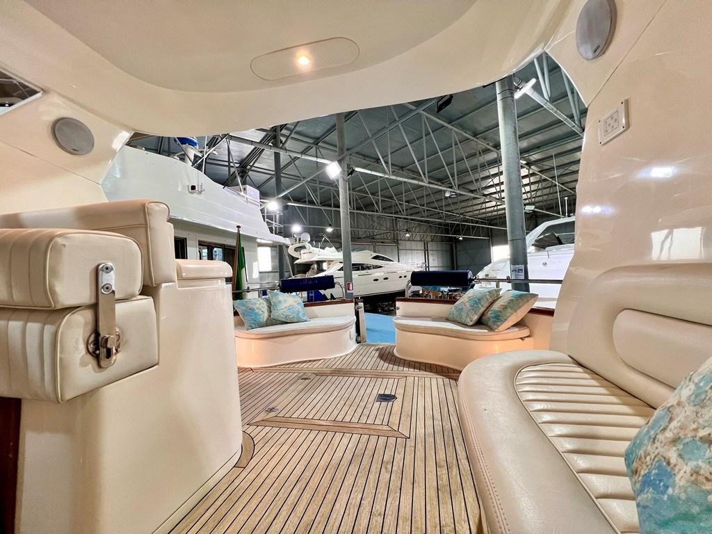 Autoclave, Colorazione speciale (Fiancate Blu Navi), Doccia esterna, Flap elettrici, Hard top (Apribile), Impianto antincendio, Piattaforma (con calpestio in teach), Pompa di sentina automatica, Ponte in teak, Porta ingresso, Pozzetto Teak, Presa 220V banchina, Salpa Ancore Elettrico, Tavolo pozzetto, Tavolo Salone Abbattibile (trasfromabile in cuccetta), Winch tonneggio di prua.