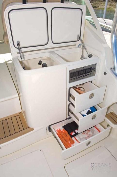 Caratterizzato da uno scafo Deep-V ad alte prestazioni, offre una navigazione stabile e veloce anche con mare formato. La motorizzazione fuoribordo da 2 x 350 HP garantisce velocità di crociera intorno ai 30–35 nodi e una velocità massima che può superare i 45–50 nodi.