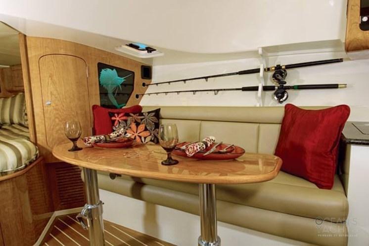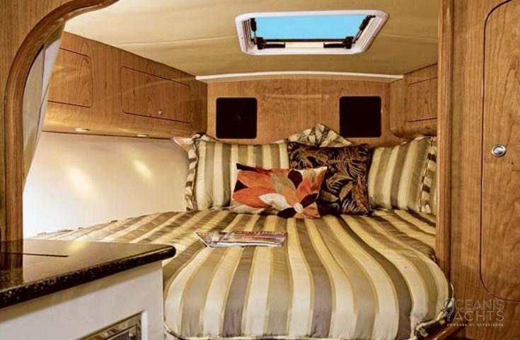 Il layout walkaround con ampio pozzetto lo rende ideale sia per la pesca sportiva che per uscite giornaliere e brevi crociere. Gli spazi esterni sono progettati per la pesca, con vasche del vivo, fish box e attrezzature dedicate, mentre gli interni offrono una cabina confortevole con letto matrimoniale, dinette convertibile, bagno separato e angolo cucina attrezzato.