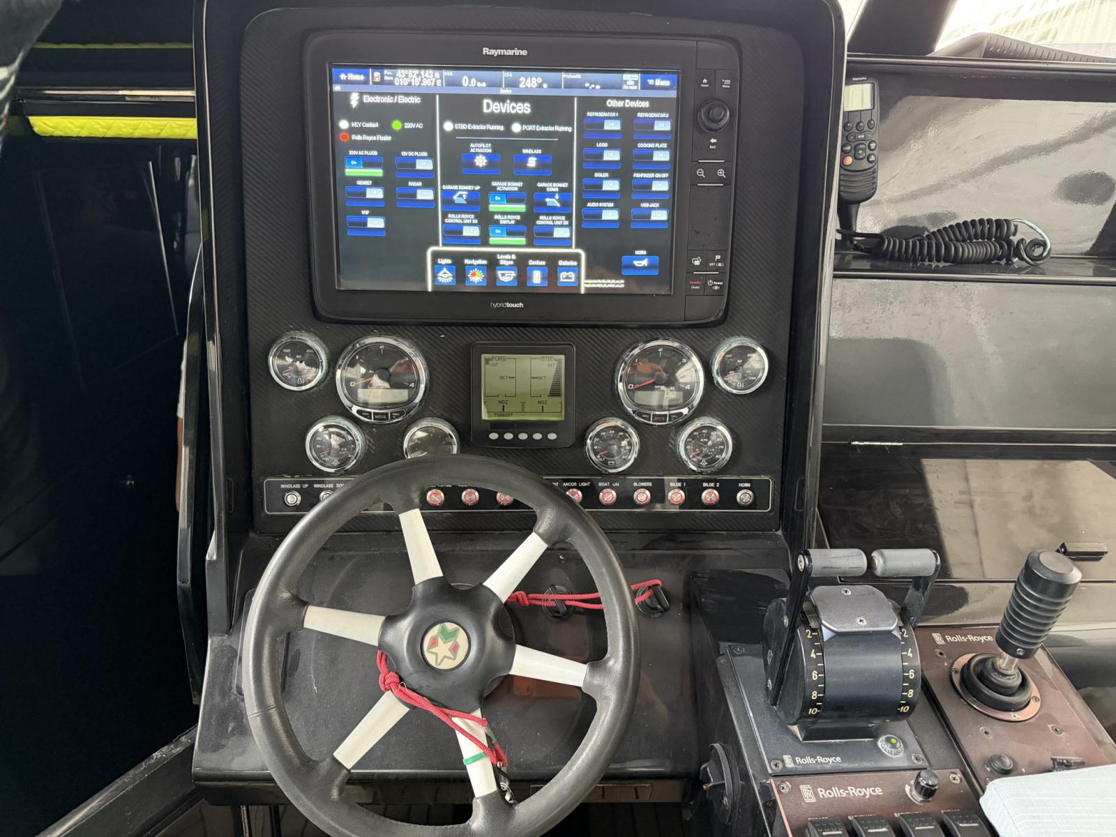Angolo barra, Display, Joystick, Monitor dei consumi, Plotter con antenna GPS, Sedile Copilota.