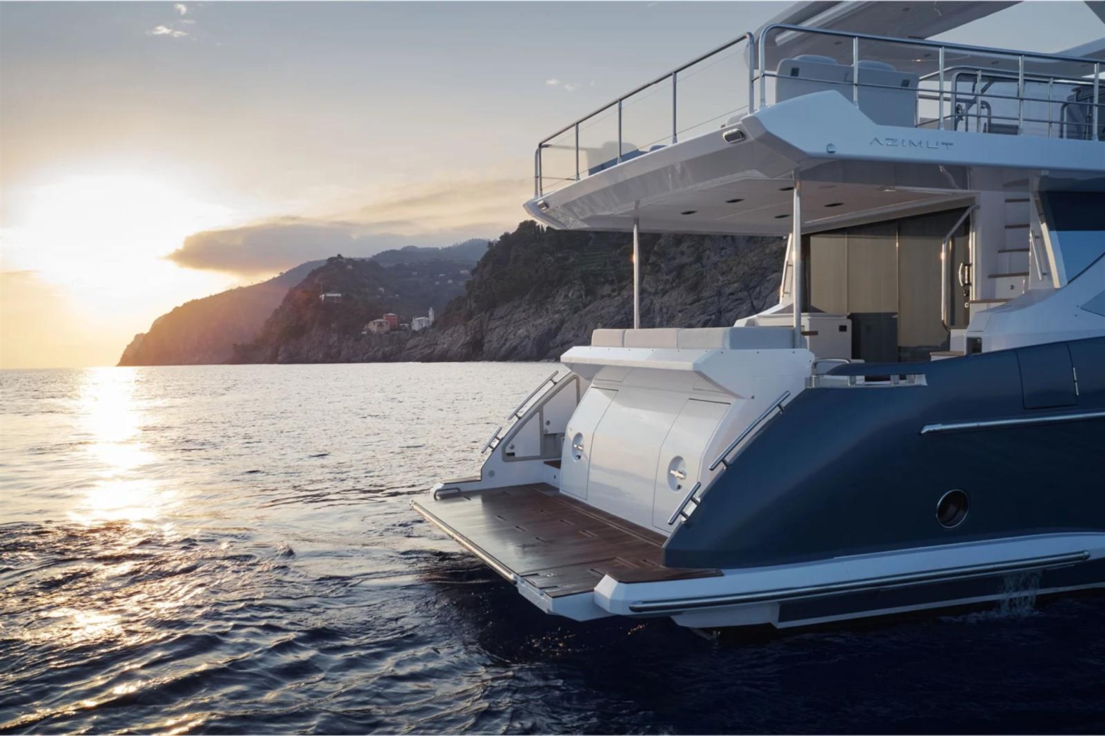 La piattaforma di poppa idraulica facilita il varo e alaggio del tender, ed offre un comodo accesso al mare