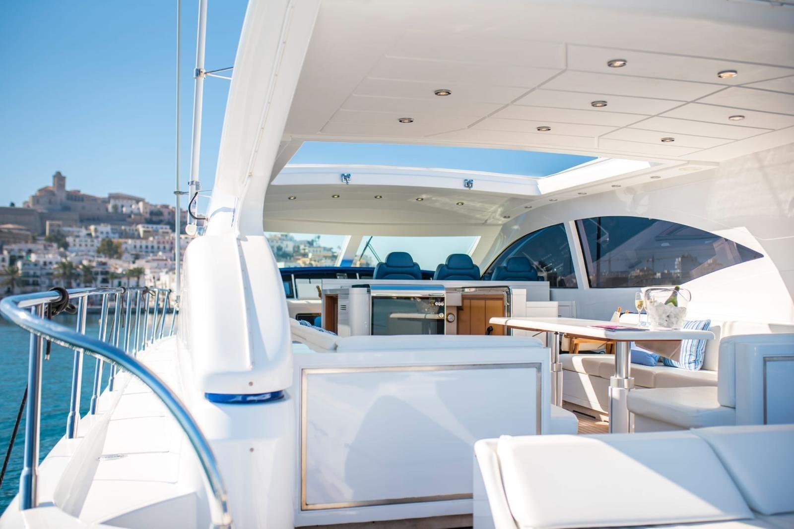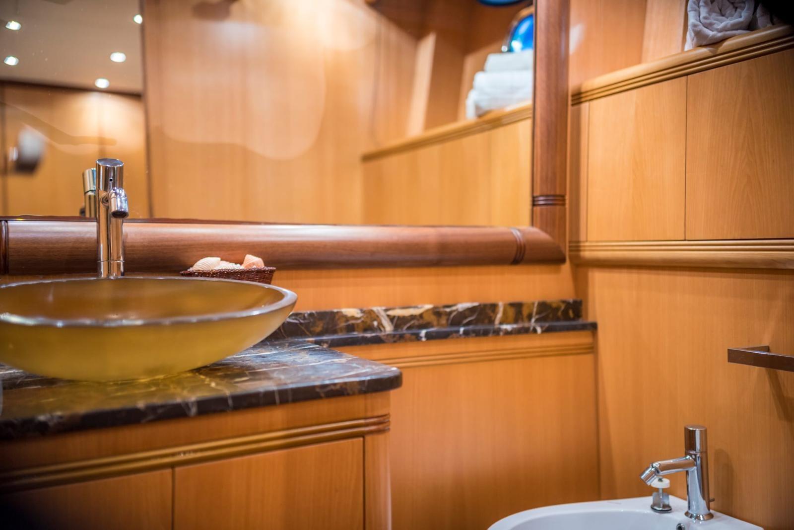 Allarme fumo/gas, Allarme motore, Allarme sentina, Autoclave, Doccia esterna, Fari fissi a poppa, Faro orientabile, Flap idraulici, Garage per tender, Hard top, Impianto antincendio, Indicatori Flaps, Lavaggio catena, Luci di cortesia, Luci subacquee, Piattaforma, Pompa di sentina automatica, Pompa di sentina manuale, Pozzetto Teak, Presa 220V banchina, Presa acqua banchina, Raddrizzatore, Salpa Ancore Elettrico, Salpa Ancore Idraulico, Scaletta da bagno, Tromba, Winch tonneggio di poppa, Winch tonneggio di prua.
