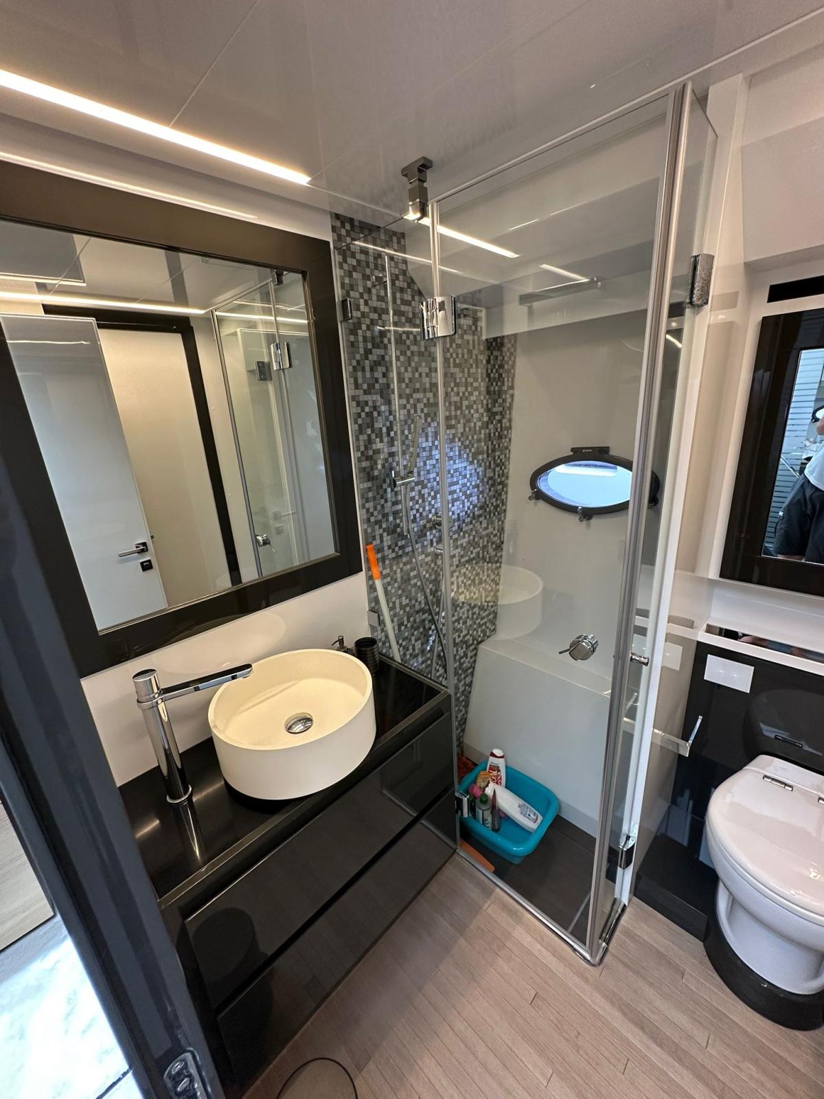 BBQ/ Grill, Boiler, Cassaforte, Clima reversibile, Collegamento internet, Dissalatore (IDROMAR 200 L/H), Impianto acque nere, 2 Inverter, Pavimento interno in legno, Prese interne 12v, Prese interne 220v, Serbatoio Acque Nere, 2 Telecamera, 4 WC marino elettrico.