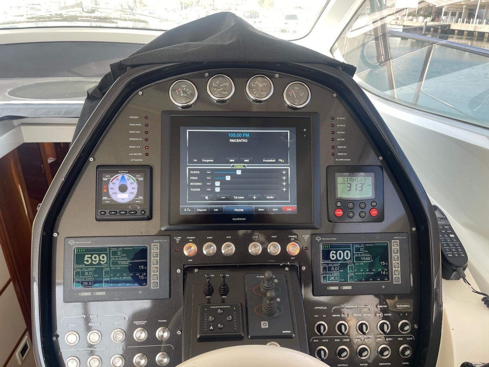 Angolo barra, Antenna radar, Comando motori elettronico (ZF), Contametri catena (QUICK), Display (MOTORE DIGITALE MAN), DSC vhf, Ecoscandaglio (RAYMARINE ST40), GPS (GARMIN 8012 G2 VISION 716 TOUCH), Pilota automatico (ST 6001).