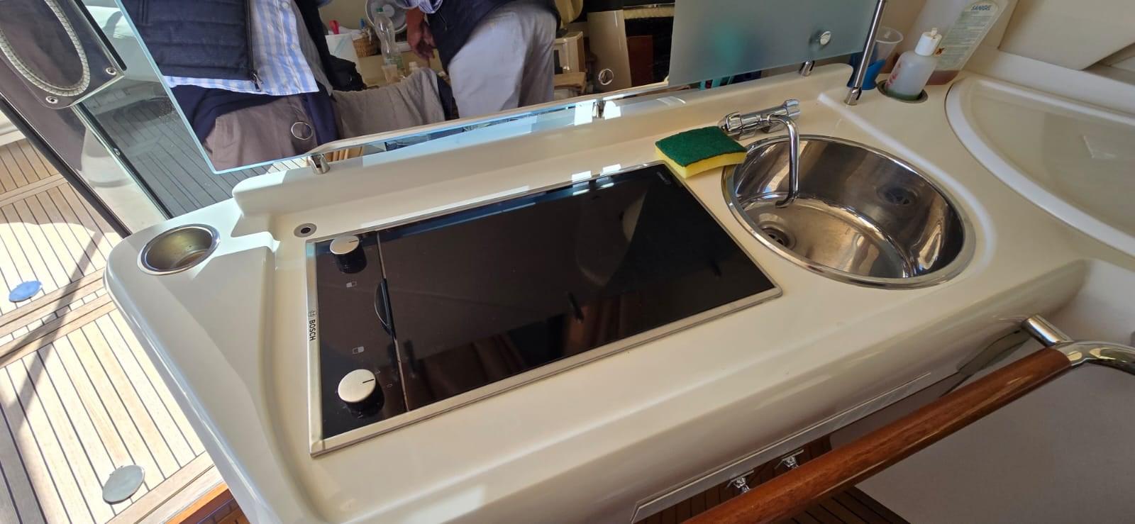 Angolo barra, Antenna radar, Comando motori elettronico, Contametri catena, Display, DSC vhf, Interfaccia, Plotter con antenna GPS, Sedile Copilota, Yacht controller.