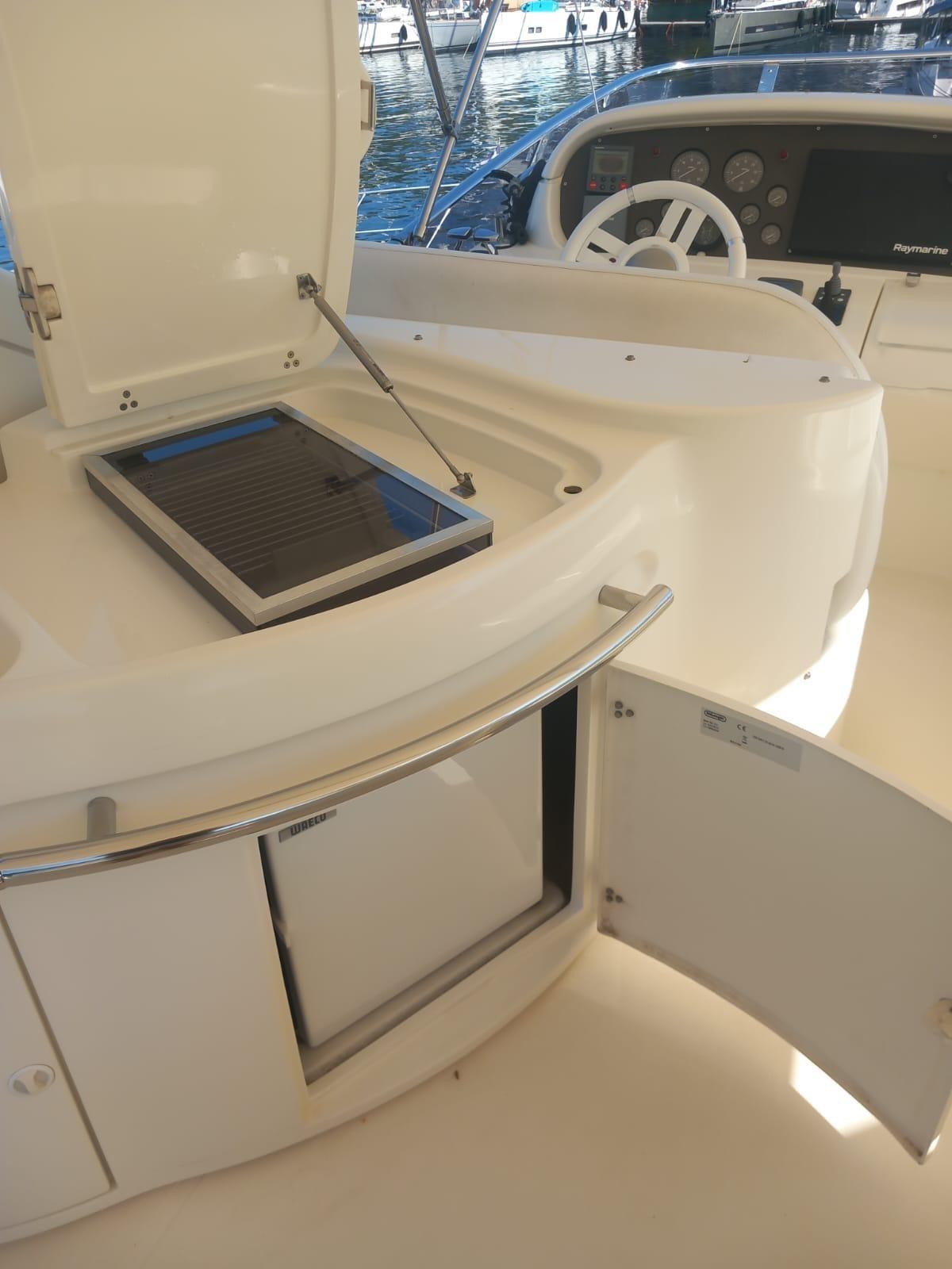 AIS, Angolo barra, Antenna radar, Comando motori elettronico, Computer di bordo, Contametri catena, DSC vhf, Plotter con antenna GPS.