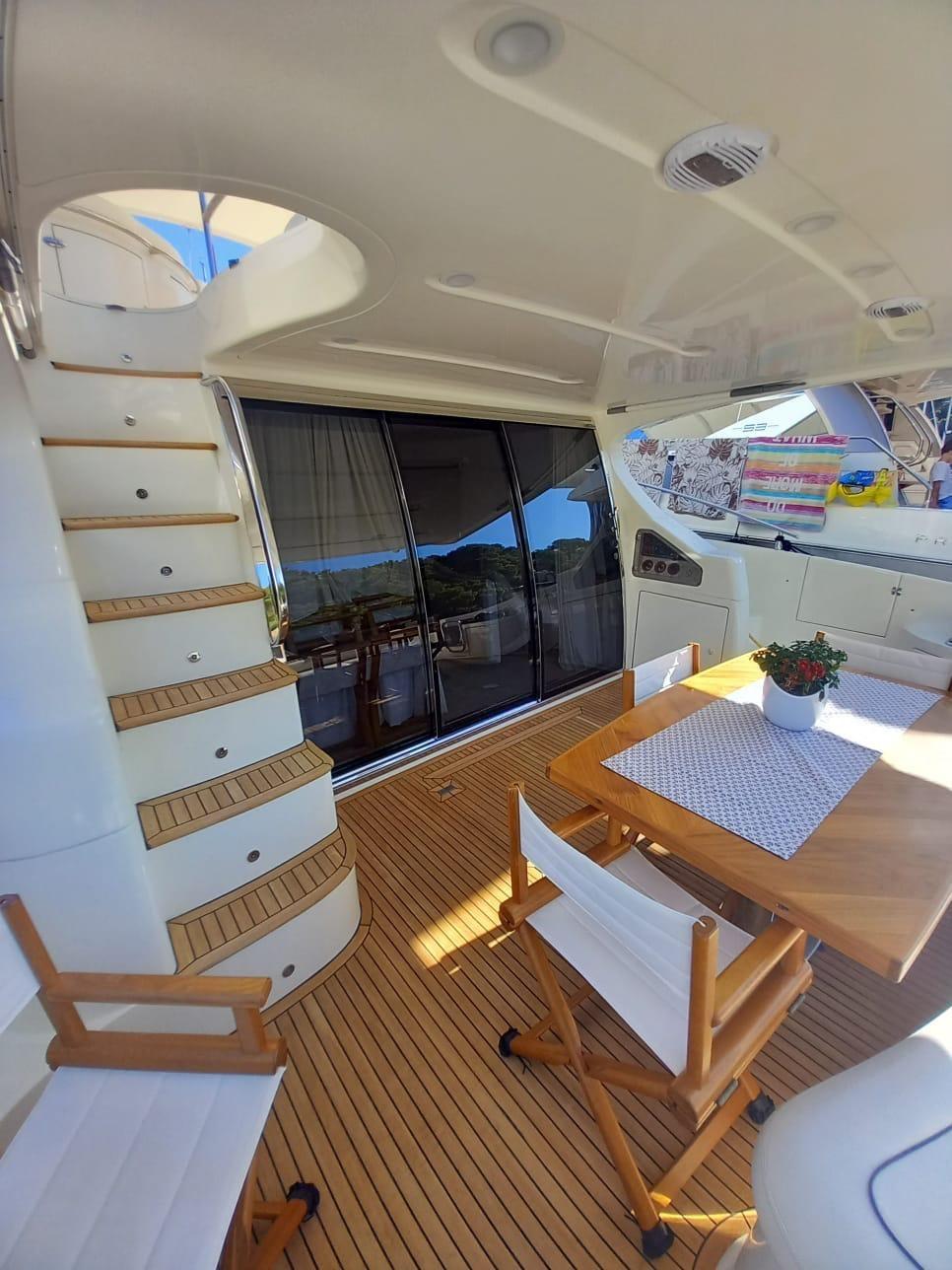 Allarme fumo/gas, Allarme motore, Allarme sentina, Autoclave, Doccia esterna, Flap idraulici, Impianto antincendio, Indicatori Flaps, Lavaggio catena, Luci di cortesia, Luci subacquee, Passerella, Piattaforma, Pompa di sentina automatica, Pompa di sentina manuale, Pozzetto Teak, Presa 220V banchina, Salpa Ancore Idraulico, Scaletta da bagno, Tromba, Winch tonneggio di poppa.