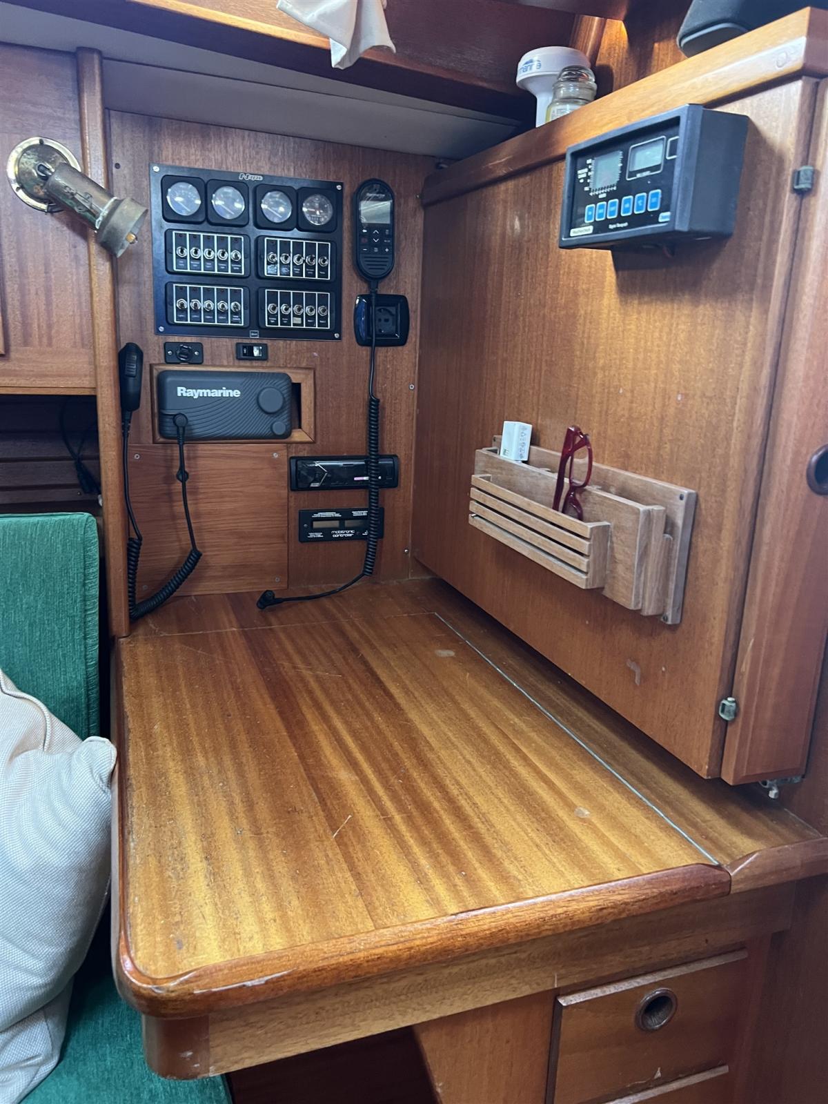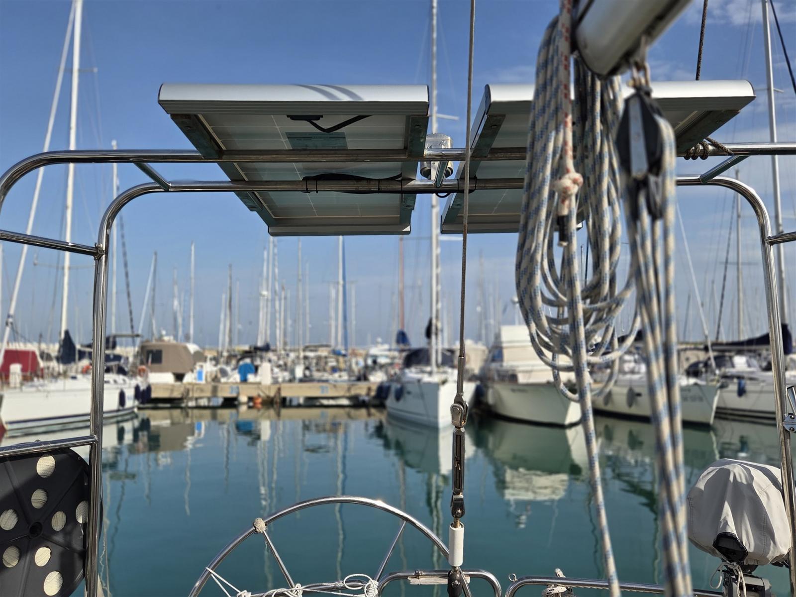AIS, Ancora poppa 10kg (2017), Ancora prua CQR 15kg (2024), Autoclave, Batterie (2023), Bimini con copertura (2025), Bussola (SPINLOCK), Cuscineria pozzetto (2024), Ecoscandaglio, GPS (RAYMARINE), Indicatore serbatoio acqua (2023), Indicatore serbatoio gasolio (2023), Luci di via (2025), Materassi (2023), Pannelli solari (2025), Pilota automatico (RAYMARINE - 2024), Plotter (RAYMARINE - 2023), Pompa autoclave (2023), Pompe sentina automatiche (2024), Ponte in teak (2017), Pozzetto in teak (2017), Prese a mare (2023), Radio VHF (RAYMARINE RAY 60 - 2017), Rig e sartiame (2017), Ripetitore VHF al timone (2023), Rollafiocco genoa (HARKEN 2017), Rollafiocco trinchetta genoa (HARKEN 2017), Salpa ancore elettrico (2017) con telecomando (2023), Spinnaker con tangone, Sprayhood (2024), Stazione vento tridata (RAYMARINE), Strapuntini di poppa (2024), Tappezzeria interna (2024), Tender (2020) con fuoribordo (HONDA - 2024), WC elettrico (2024), Winch LEWMAR (5)