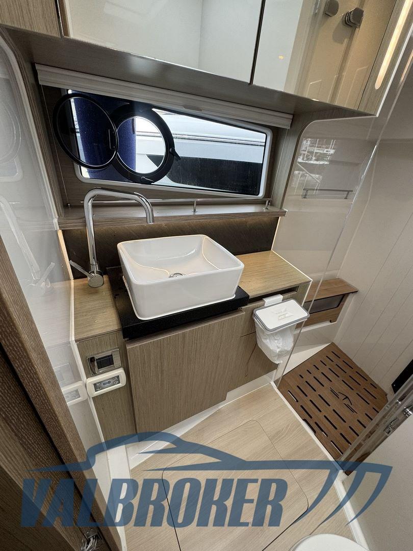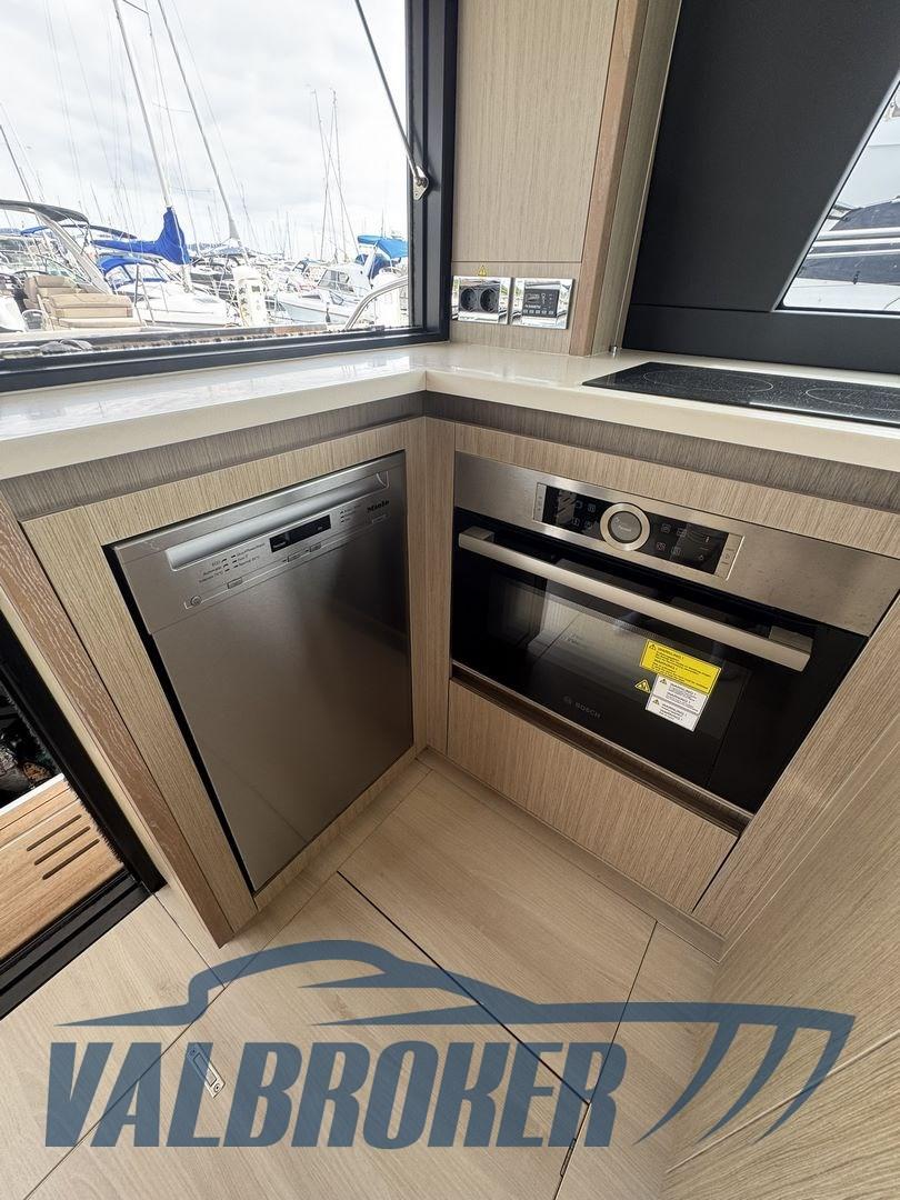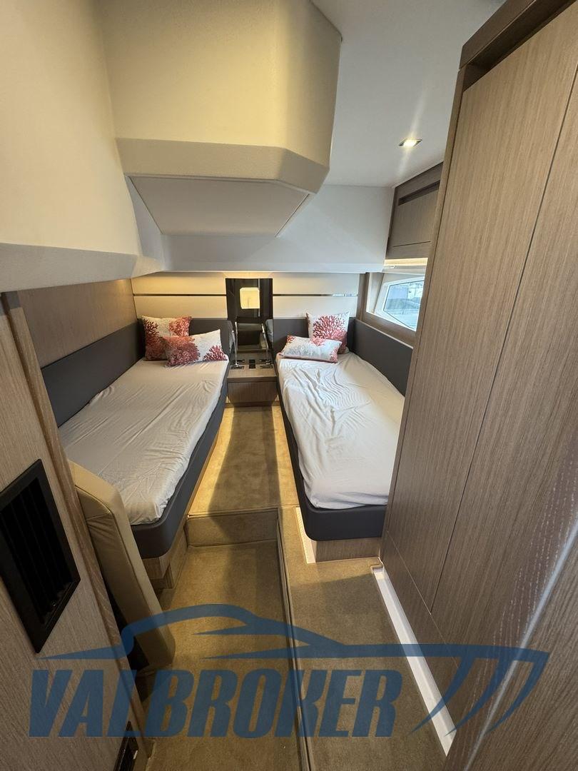 Flybridge del cantiere tedesco, alimentato da 2xVolvo D6 IPS600 turbo diesel common rail e con solo 295 ore di moto. I tagliandi sono stati eseguiti regolarmente da Centro Assistenza Ufficiale Volvo Penta. Interni in legni chiari. Sottocoperta sono presenti tre cabine in piano: due matrimoniali e una cabina ospiti con due letti separati e due bagni. Cucina con forno, piastra ad induzione, lavastoviglie e due grandi frigoriferi. Generatore, elica di prua, Joystick di manovra Volvo Penta, clima reversibile.