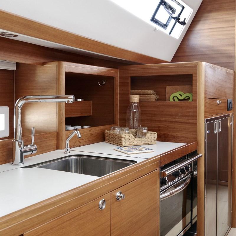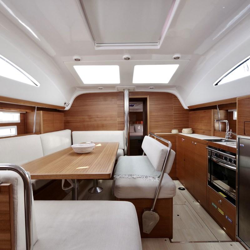 Allarme motore, Doccia esterna, Doppia timoneria, Pannelli Solari, Piattaforma, Pompa di sentina manuale, Pozzetto Teak, Presa 220V banchina, Presa acqua banchina, Salpa Ancore Elettrico, Scaletta da bagno, Tavolo pozzetto.