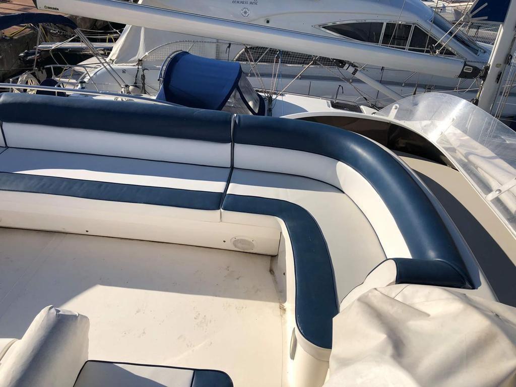 Allarme motore, Allarme sentina, Alternatore, Autoclave, 6 Batterie, Camminamenti laterali in teak, Doccia esterna, 2 Elica di rispetto, Faro orientabile, Flap idraulici, Impianto antincendio, Indicatori Flaps, Luci di cortesia, Parabordi, Passerella, Piattaforma, Pompa di sentina automatica, Pompa di sentina manuale, Ponte in teak, Porta ingresso, Pozzetto Teak, Presa 220V banchina, Presa acqua banchina, Raddrizzatore, Rollbar, Salpa Ancore Elettrico, Scaletta da bagno, Sistema Depurazione acque nere, Tavolo pozzetto, Tromba, 2 Winch tonneggio di poppa.