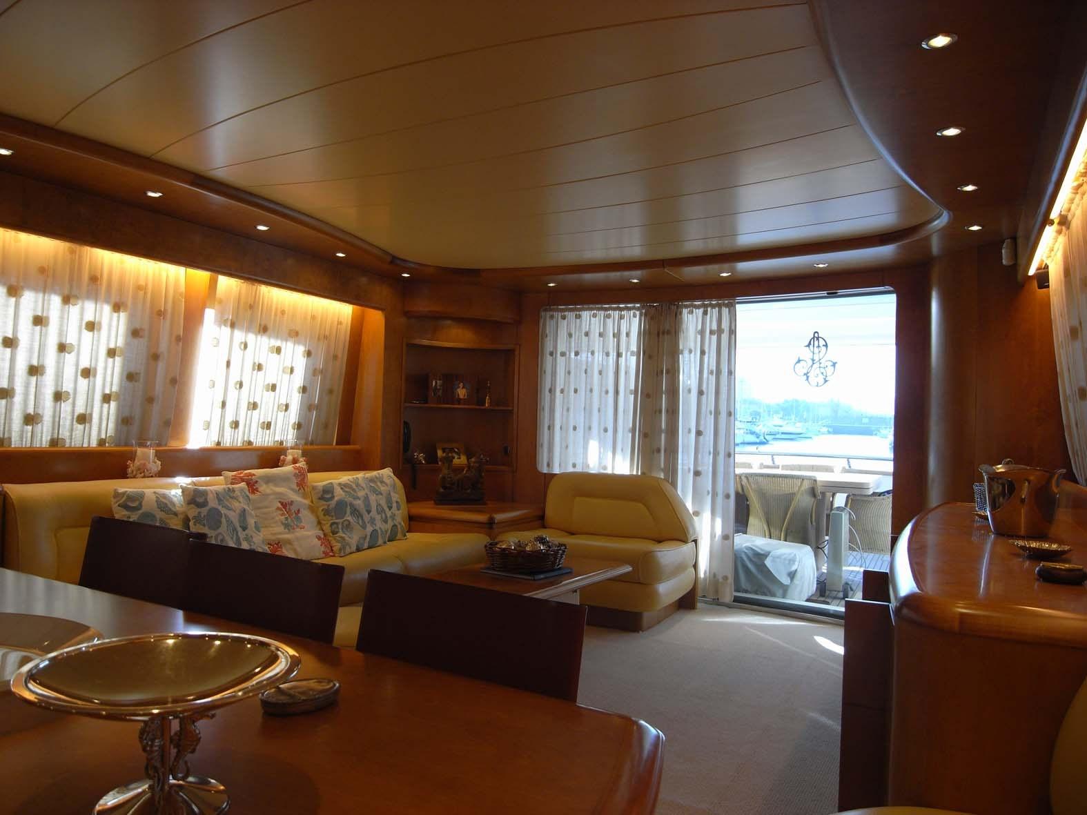 Acqua Calda, Aria condizionata (CALDO FREDDO 90.000 BTU), Boiler, Cassaforte, Clima reversibile, Collegamento internet, Collegamento internet satellitare, Dissalatore, Indicatore del serbatoio del carburante, Indicatore del Serbatoio dell’Acqua, Indicatore della pressione dell’olio nel motore, Indicatore della temperatura del motore, Pavimento interno in legno, Prese interne 12v, Prese interne 220v, WC marino elettrico.