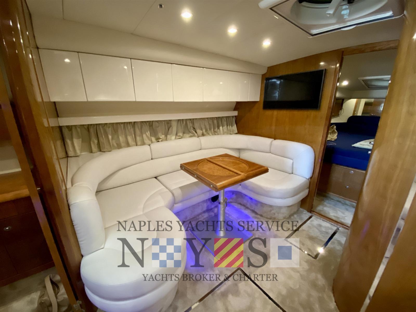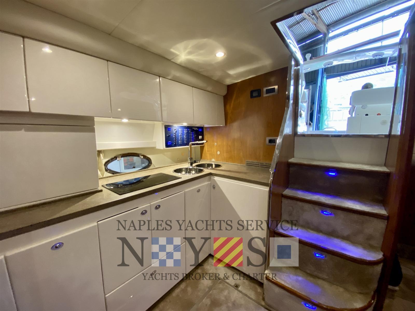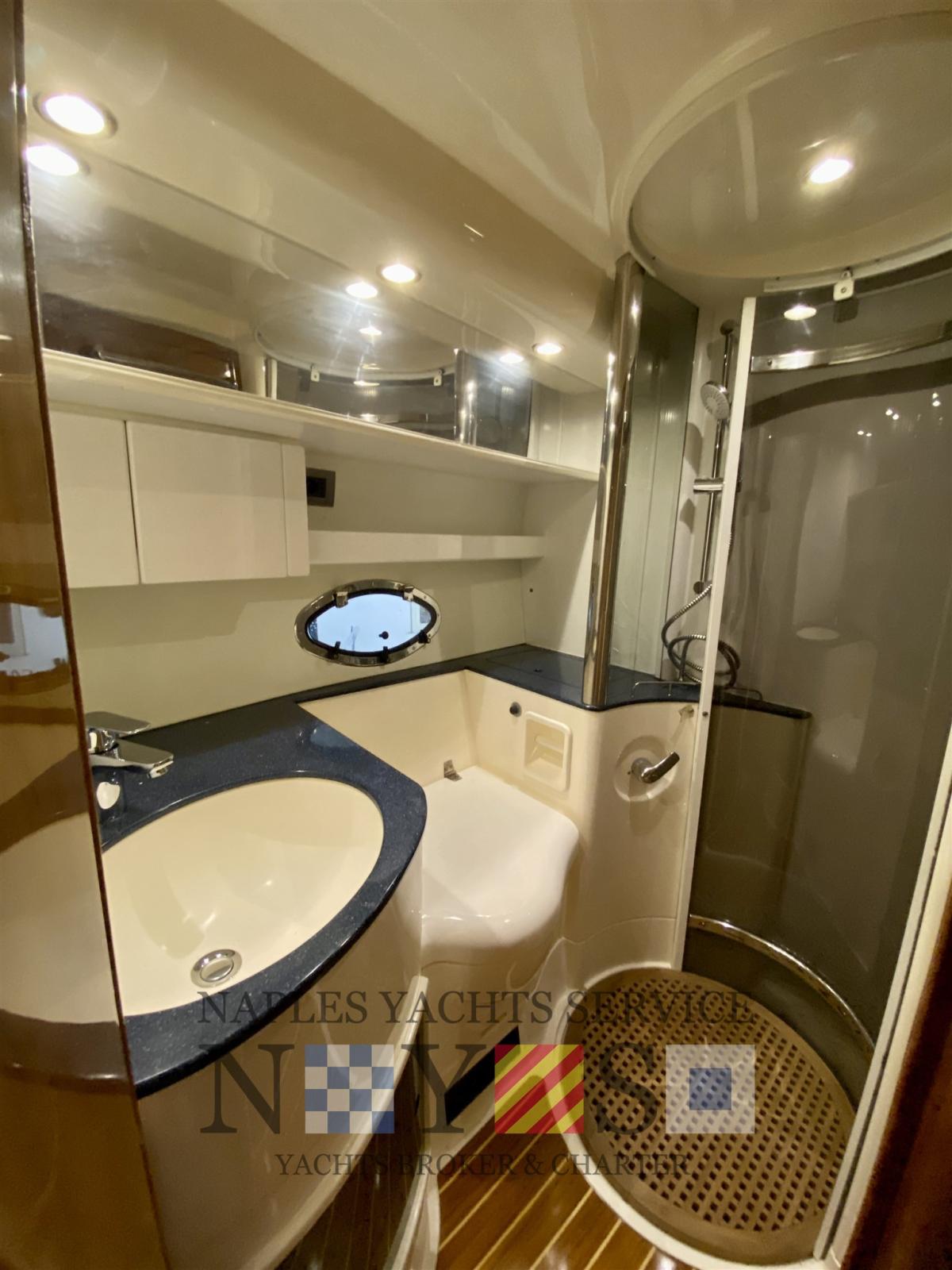 Sottocoperta, gli interni rifatti in stile Fairline presentano una cabina principale accogliente e luminosa, bagno rinnovato con soluzioni eleganti, e una zona giorno curata nei dettagli, che coniuga estetica e funzionalità. Ogni elemento è pensato per vivere la barca con comfort, sia per crociere di più giorni sia per navigazioni giornaliere.