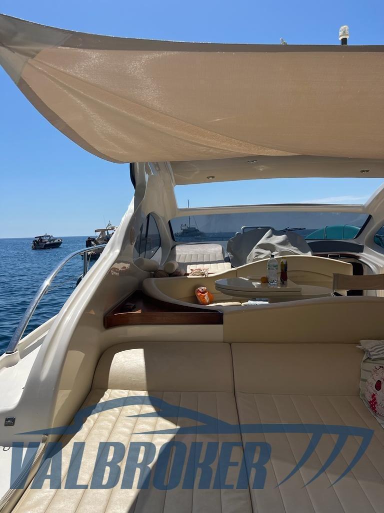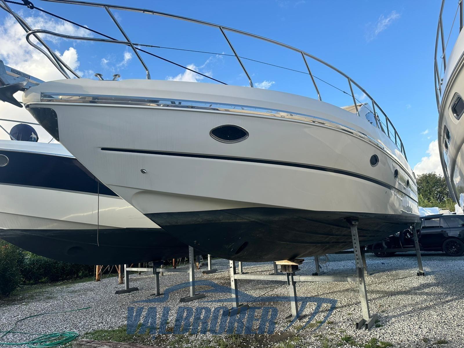 Cruiser sportivo con ampio spazio prendisole a poppa e pozzetto spazioso. Model year 2010, prima immatricolazione 2011, motorizzata con 2 x Volvo Penta D6, 370 Hp common-rail, diesel. Unico proprietario. Viene venduta pronta per la stagione con tagliando motori già eseguito, nuovi scambiatori di calore e antivegetativa. FULL OPTIONAL: aria condizionata caldo/freddo, generatore MASE, elica di prua, pilota automatico. Attualmente in secca al coperto.