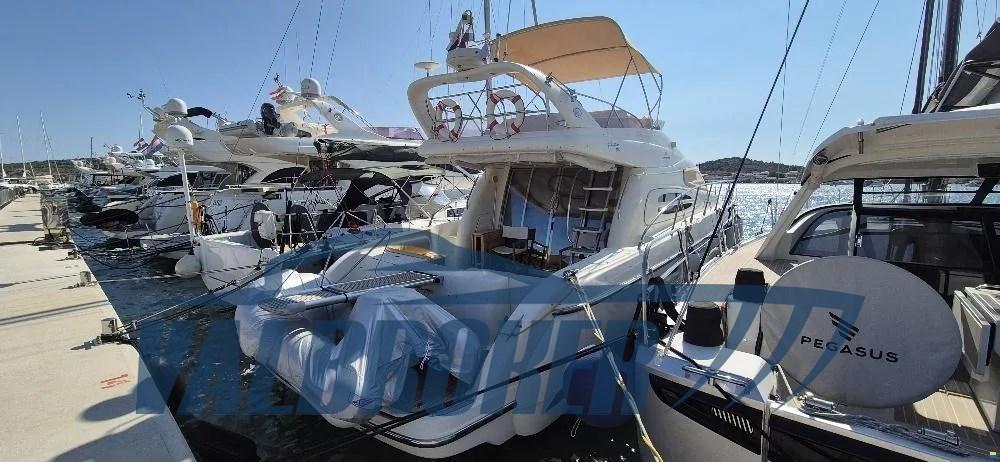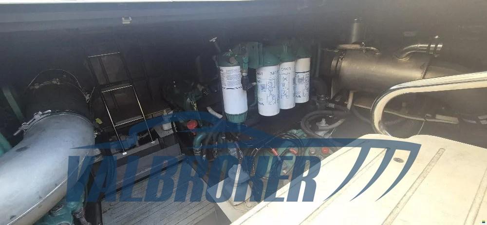 Flybridge proveniente dal cantiere italiano. 2x Volvo Penta D9 in linea d'asse. Cabina matrimoniale a prua, cabina ospiti matrimoniale, cabina ospiti con letti separati e cabina marinaio.